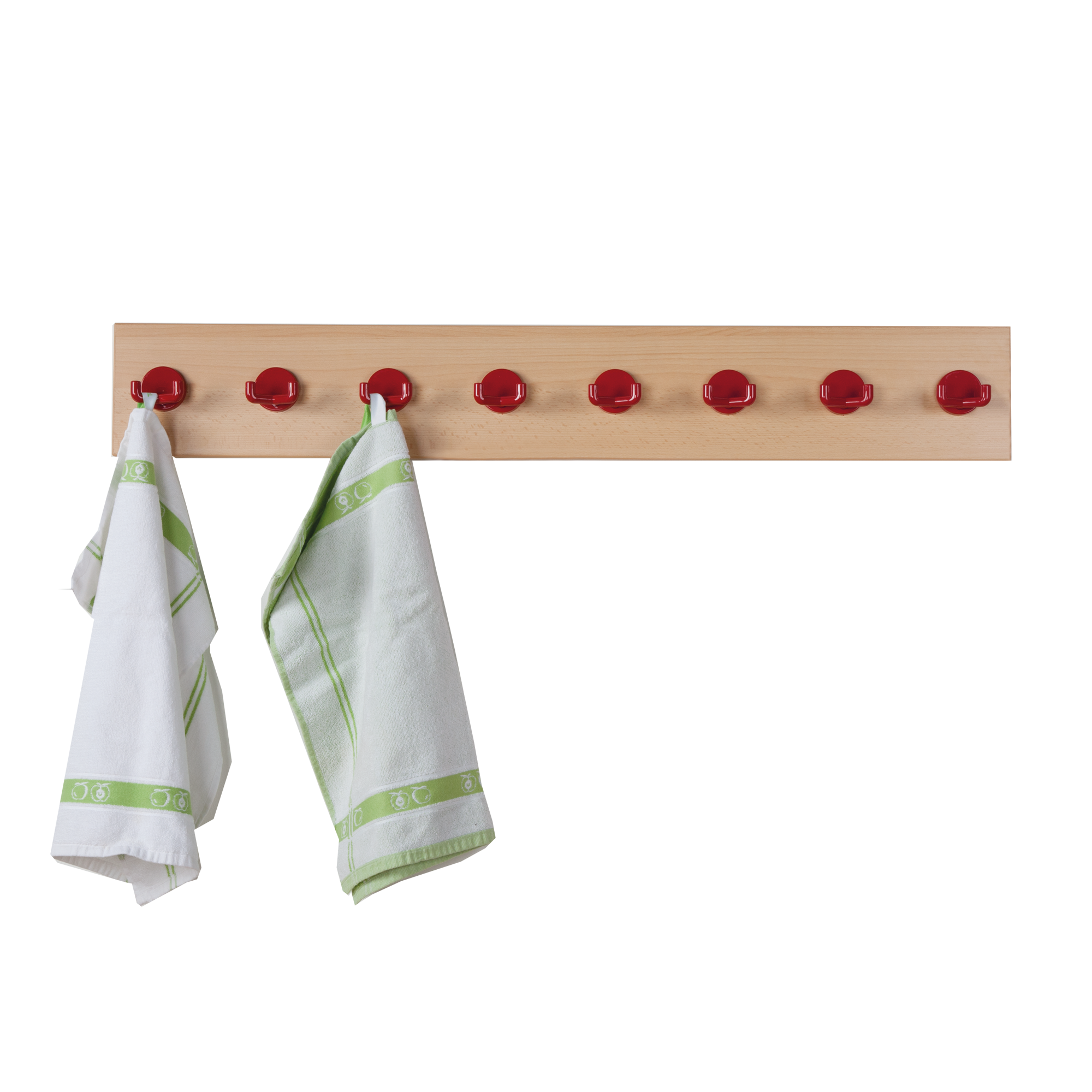 Eine einfache Hakenleiste - aber mit verschiedenen Ausführungsmöglichkeiten, die natürlich von Ihnen bestimmt werden! Die Blende enthält natürlich die Vorbohrungen zur Befestigung -