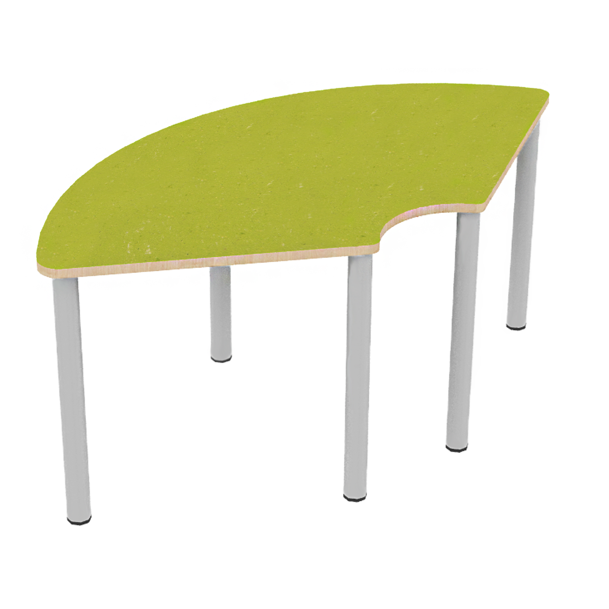 Drittelkreistische, Stellfläche B/T: 173x80 cm, Höhen 25…76 cm, Stahlrohrbeine Ø 60 mm, Fußvariante: fahrbar