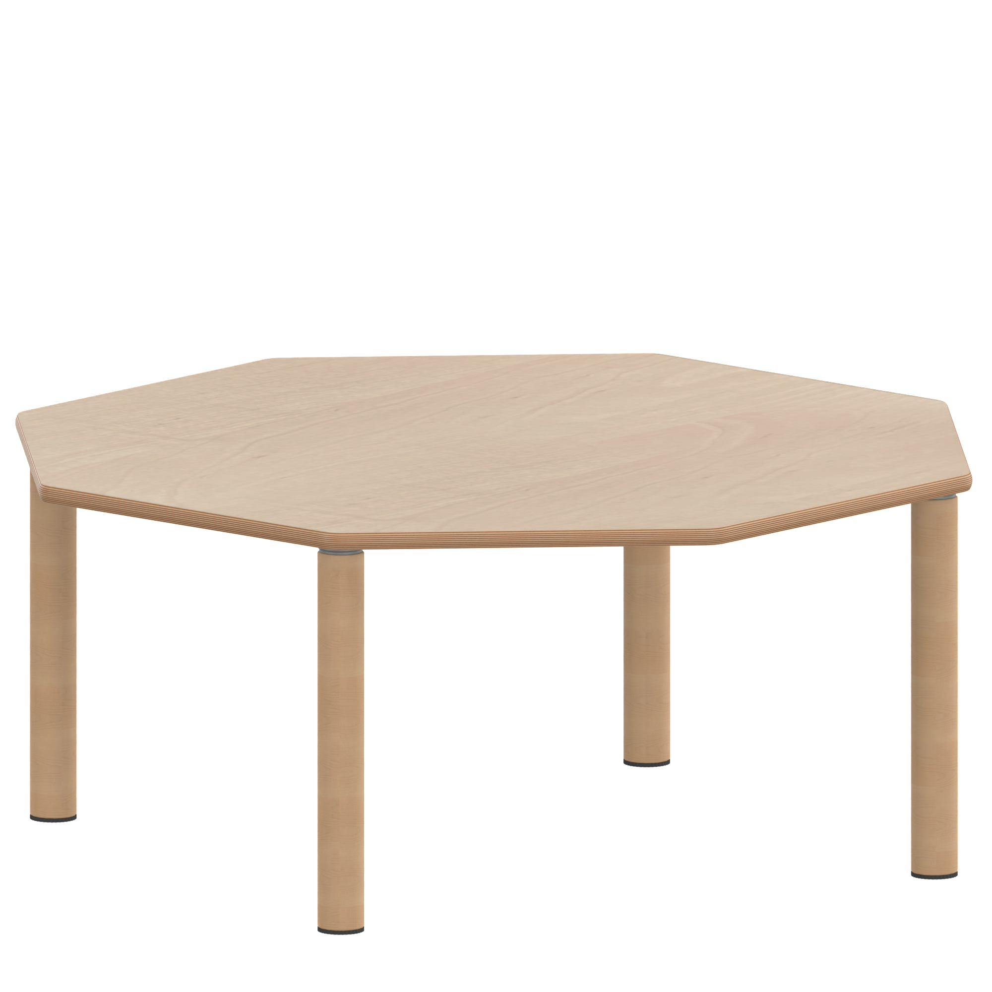 Achtecktische, Plattenmaß B/T: 120x120 cm, Höhen 25…76 cm, Massivholzbeine Ø 60 mm, Fußvariante: fahrbar