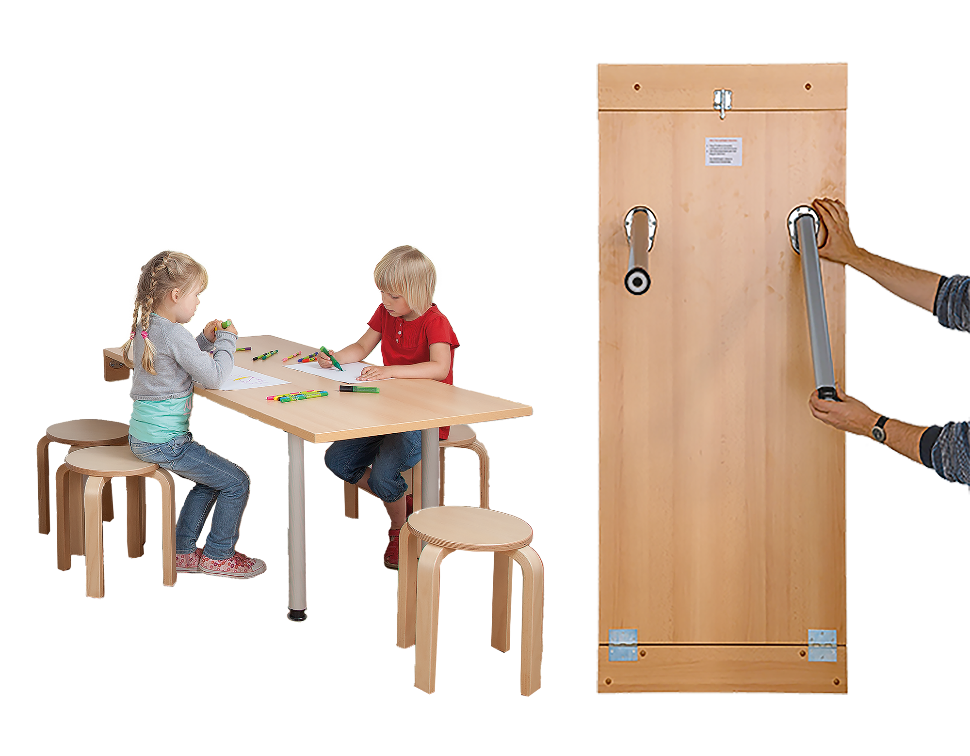 Ob mit einem Transportwagen oder als fahrbares Einzelstück: unsere Klapptische lassen sich bequem an Ihre Einsatz- und Bestimmungsorte transportieren. Im Vergleich zu konventionellen Tischen glänzen die Klapptische also mit einer wesentlich höheren Mobilität und Flexibilität. Dies gilt im Übrigen nicht nur für die Aufstellfläche, sondern auch für den Aufbewahrungsort. Bei wenig Stellfläche nehmen die Klapptische nämlich bedeutend weniger Platz weg als vergleichbare Tischmöbel. Das gilt vor allem für unsere stapelbaren Klapptische, die dadurch zum echten Platzwunder werden. Kein Wunder, dass einer unserer Klapptische den Namen „Spaceflex“ trägt. Übrigens sind unsere Klapptische nicht nur horizontal stapelbar, sondern auch vertikal. Vertikal stapeln, fragt Ihr euch jetzt? Ja unser Seitenklapptisch macht es möglich, auch bei vertikaler Lagerung, platzsparend die Tische zu „stapeln“.