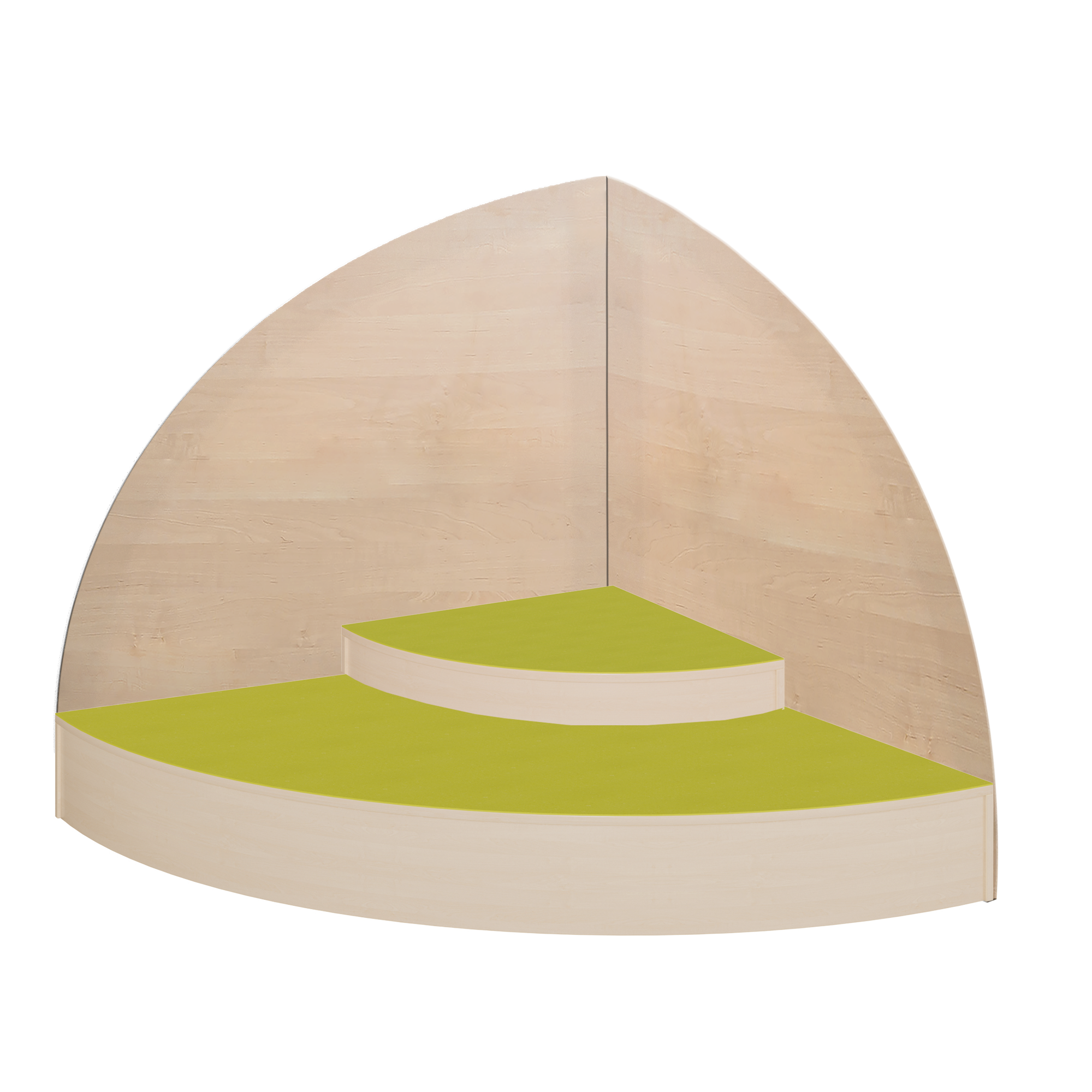 B/H/T: 152x150x152 cm, 2 terassenförmige Viertelkreis-Podeste mit Linoleum und 2 gerundete Rückwände
