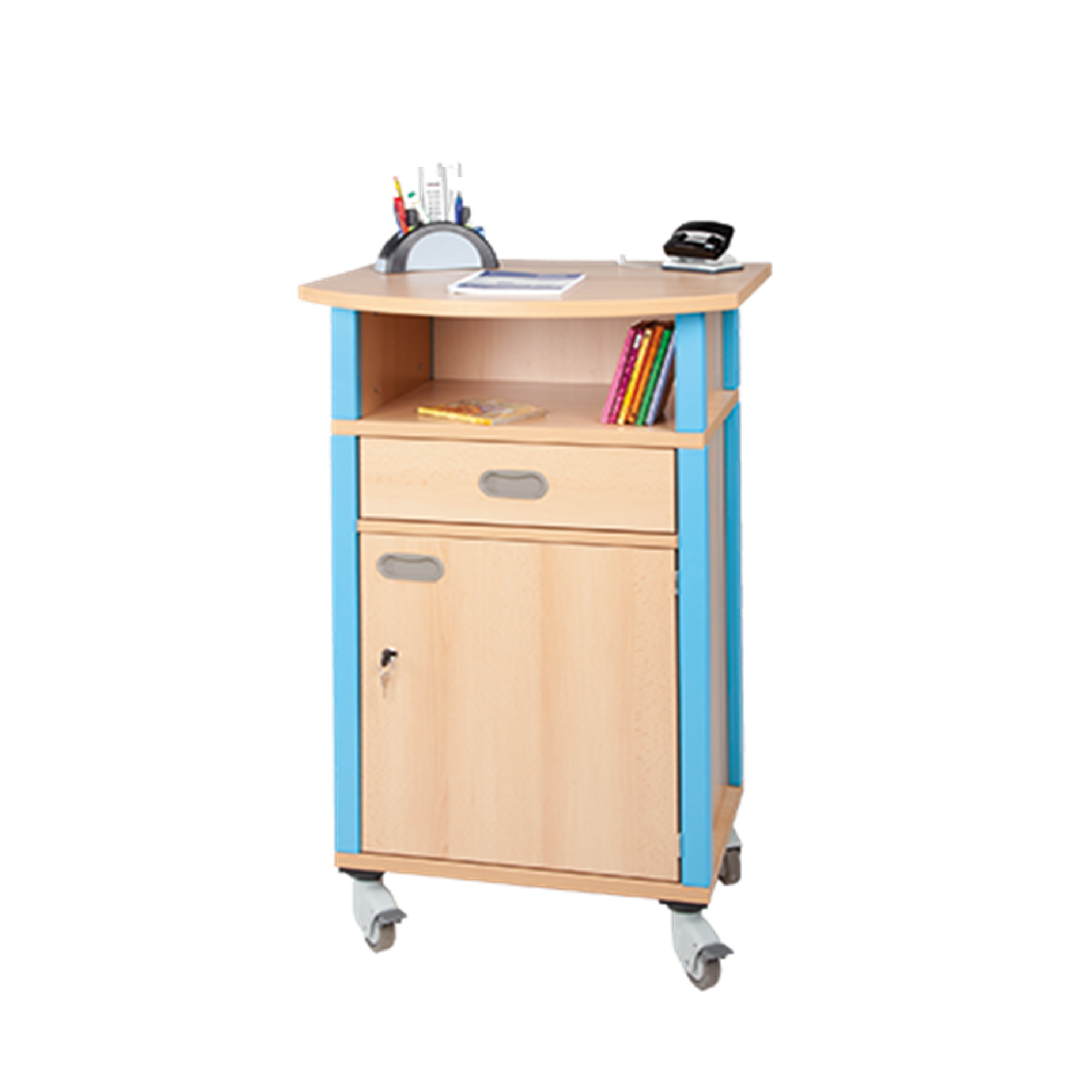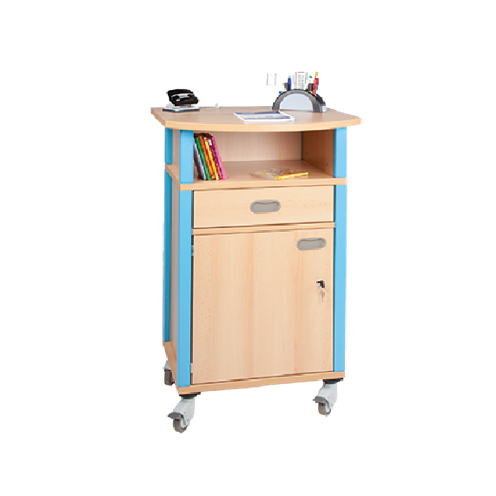 Für öffentliche Räume, Aufenthaltsbereiche oder Klassenzimmer, in denen Sie persönlichen Stauraum benötigen, bieten sich unsere verschließbaren Schränke sehr gut an. So bleibt alles so staubfrei und platzsparend wie möglich, da wo Sie es wollen, in Sicherheit. Die Böden unserer Schränke sind zudem mit Auszugssicherungen versehen, was ein ungewolltes Herausziehen der Einlegeböden verhindert.