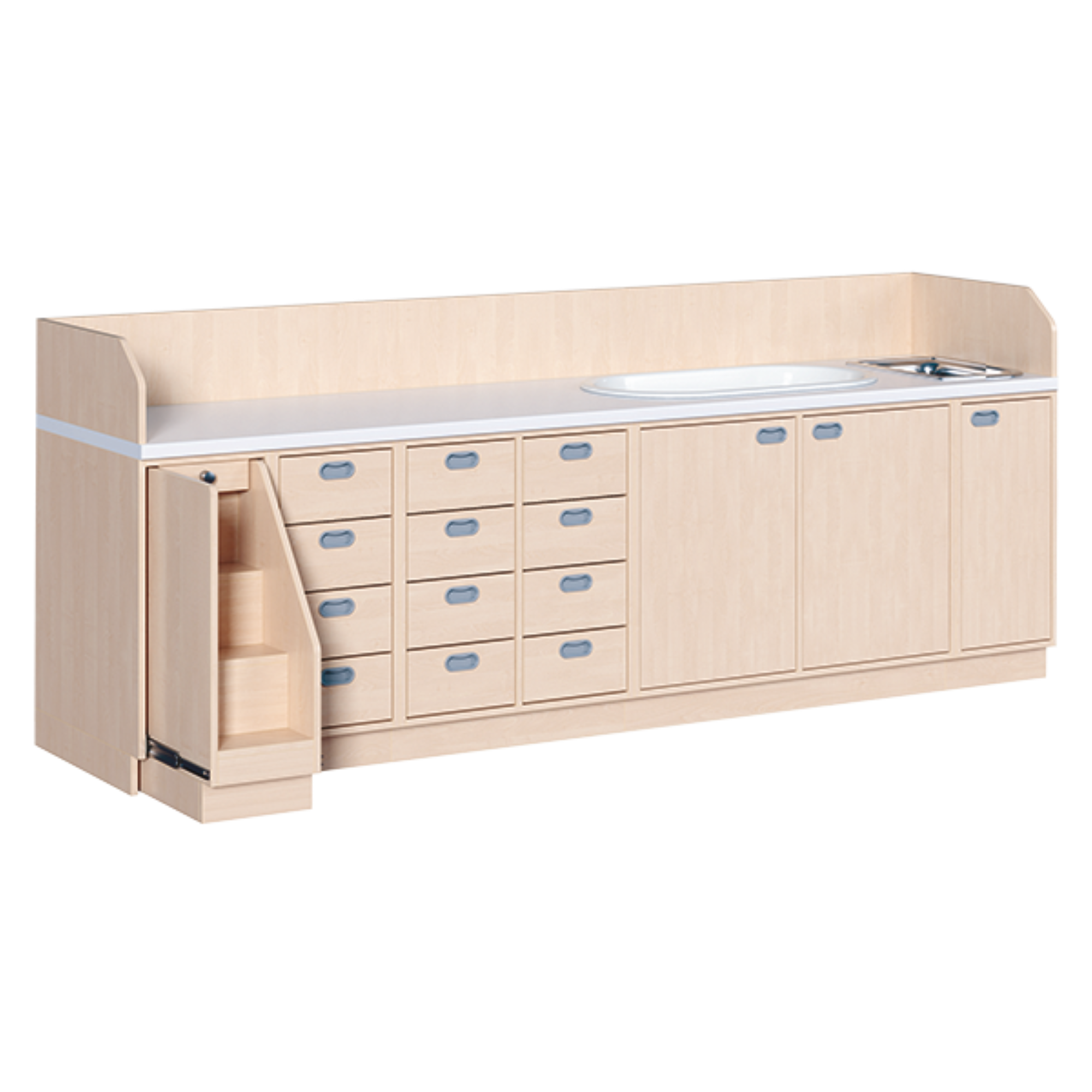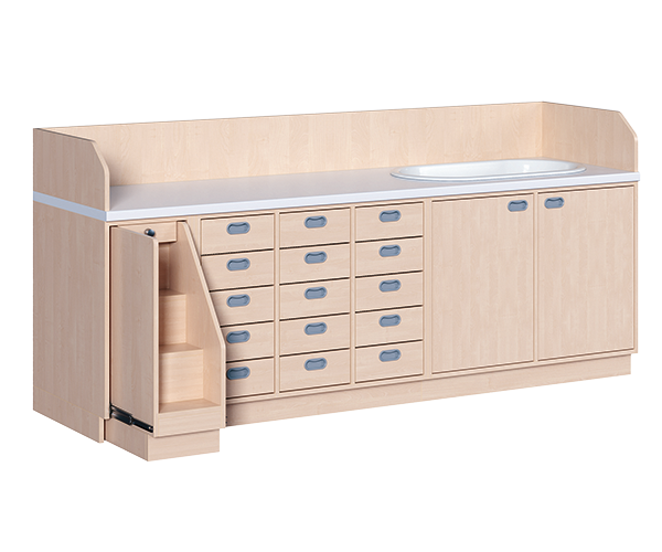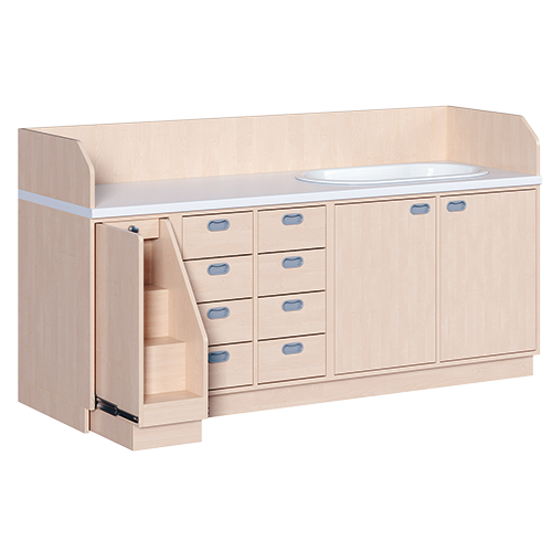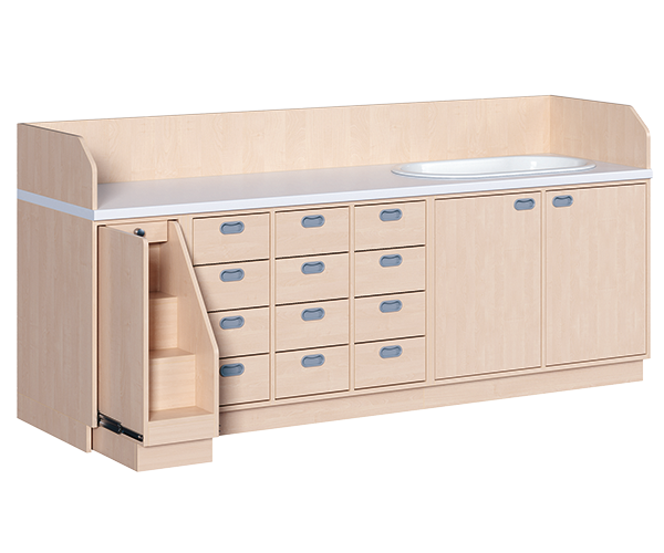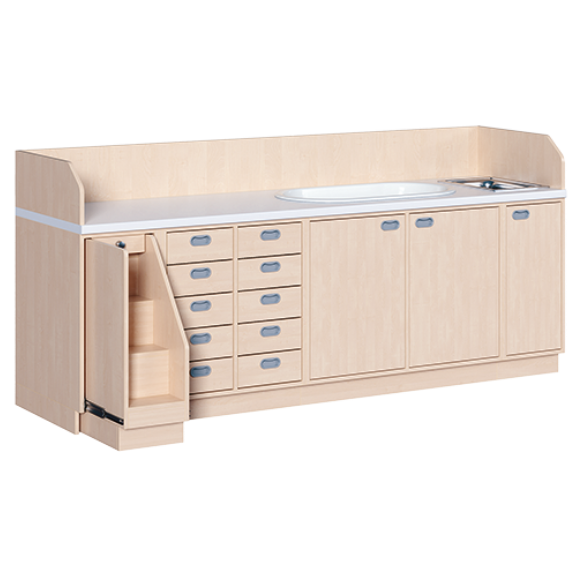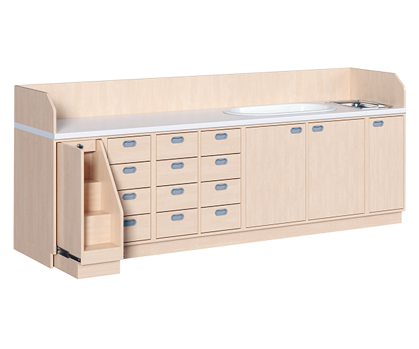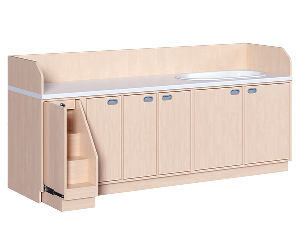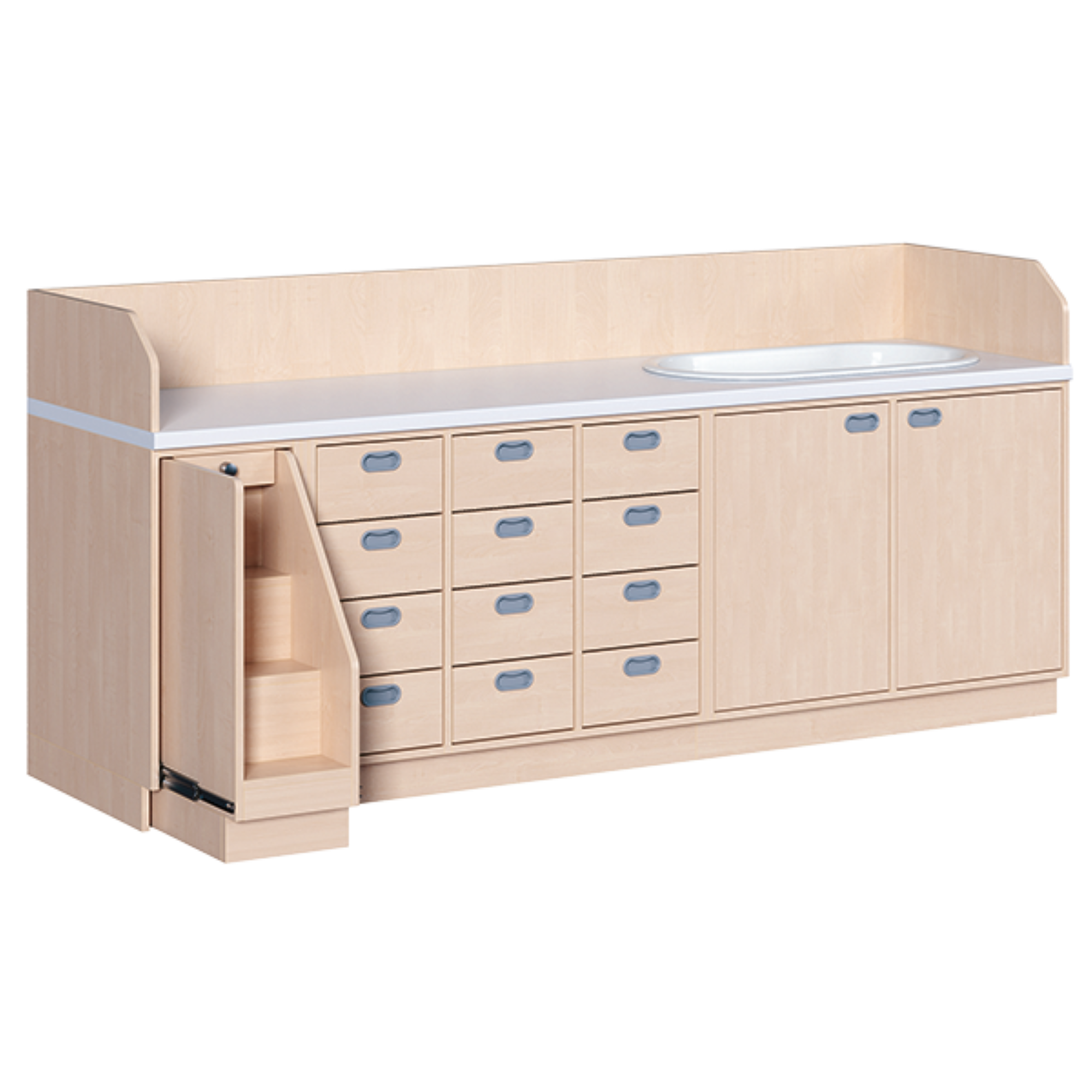 Wickelkommode, vierreihig zuzüglich Waschbecken