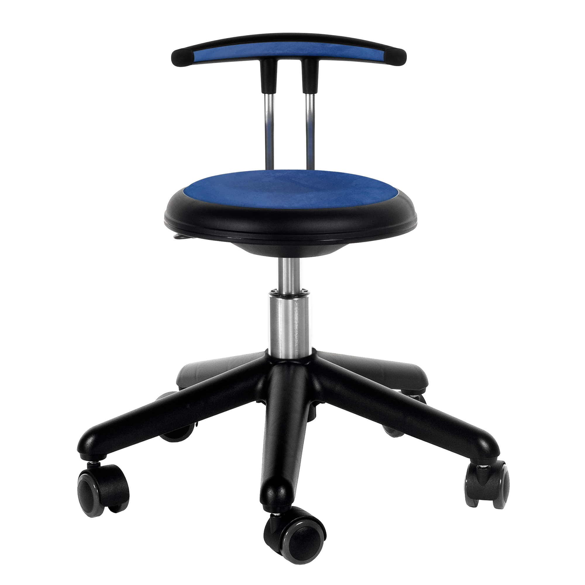 Sitzhöhe: 38-48 cm, mit Rollen, Kunstleder blau