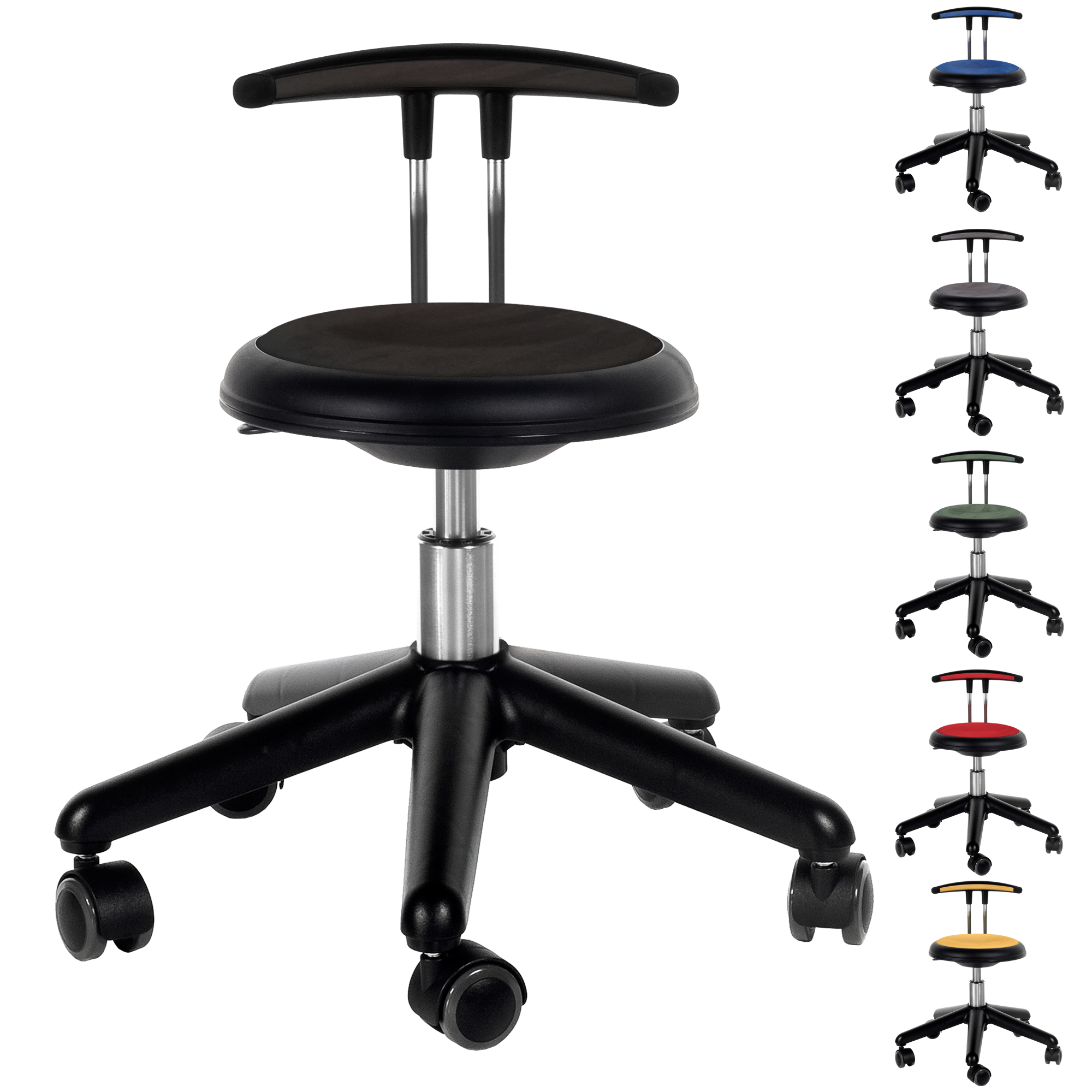 Hocker Carina, mit Kunstlederbezug, fahrbar, mit Rückenlehne