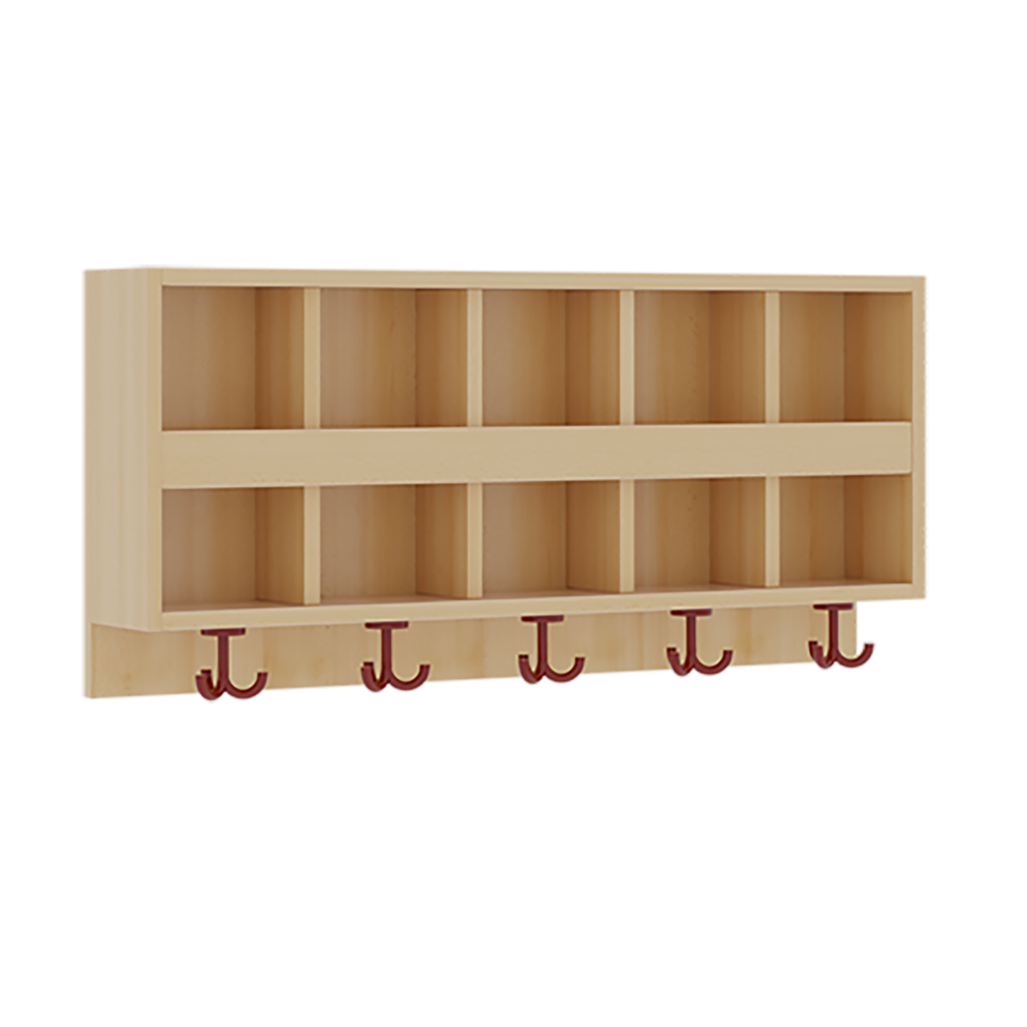B/H/T: 100x46x20 cm, 2x5 Fächer und Blende, 5 St. 3fach-Haken, oben offene Unterteilungen