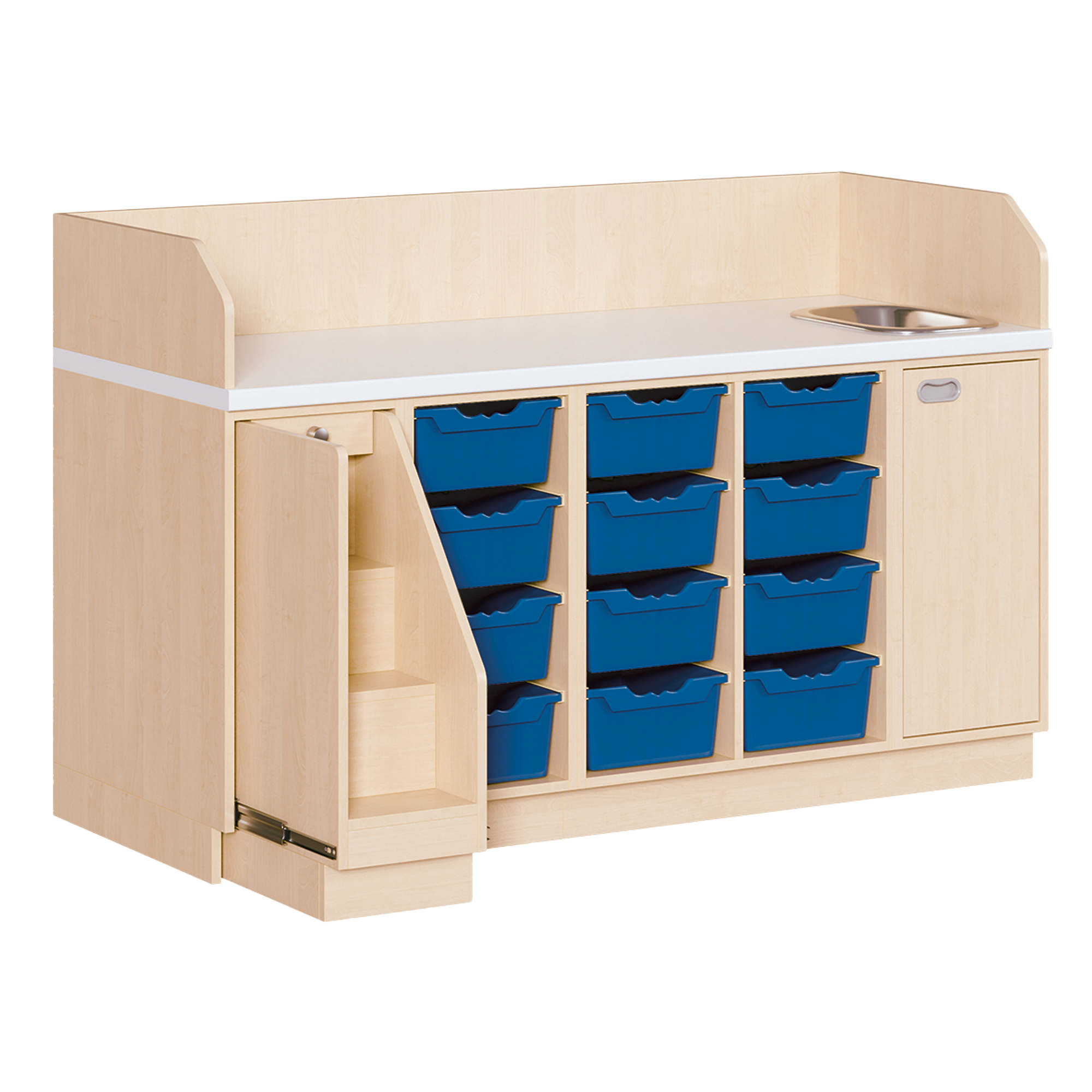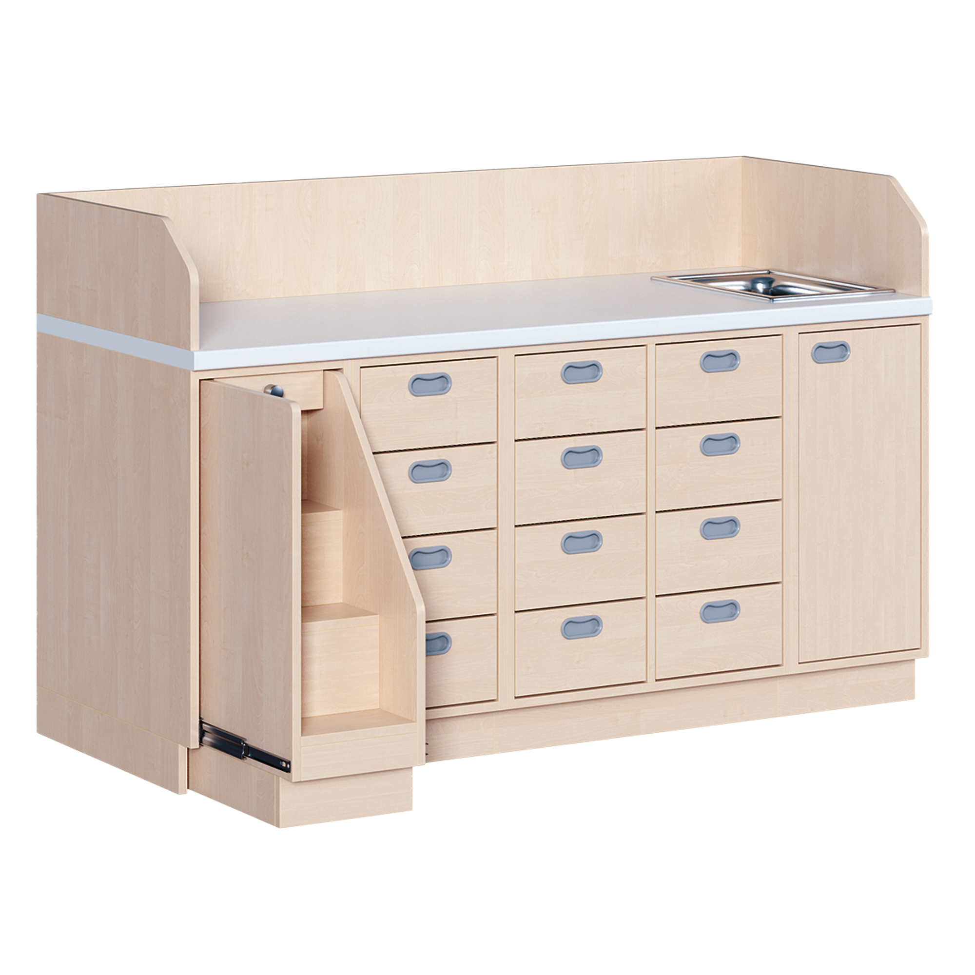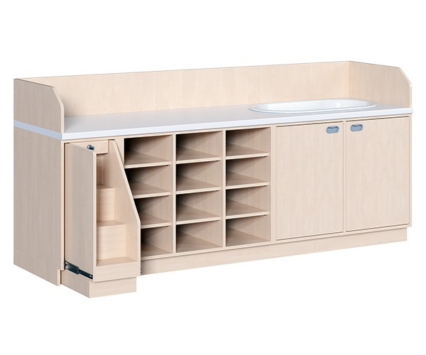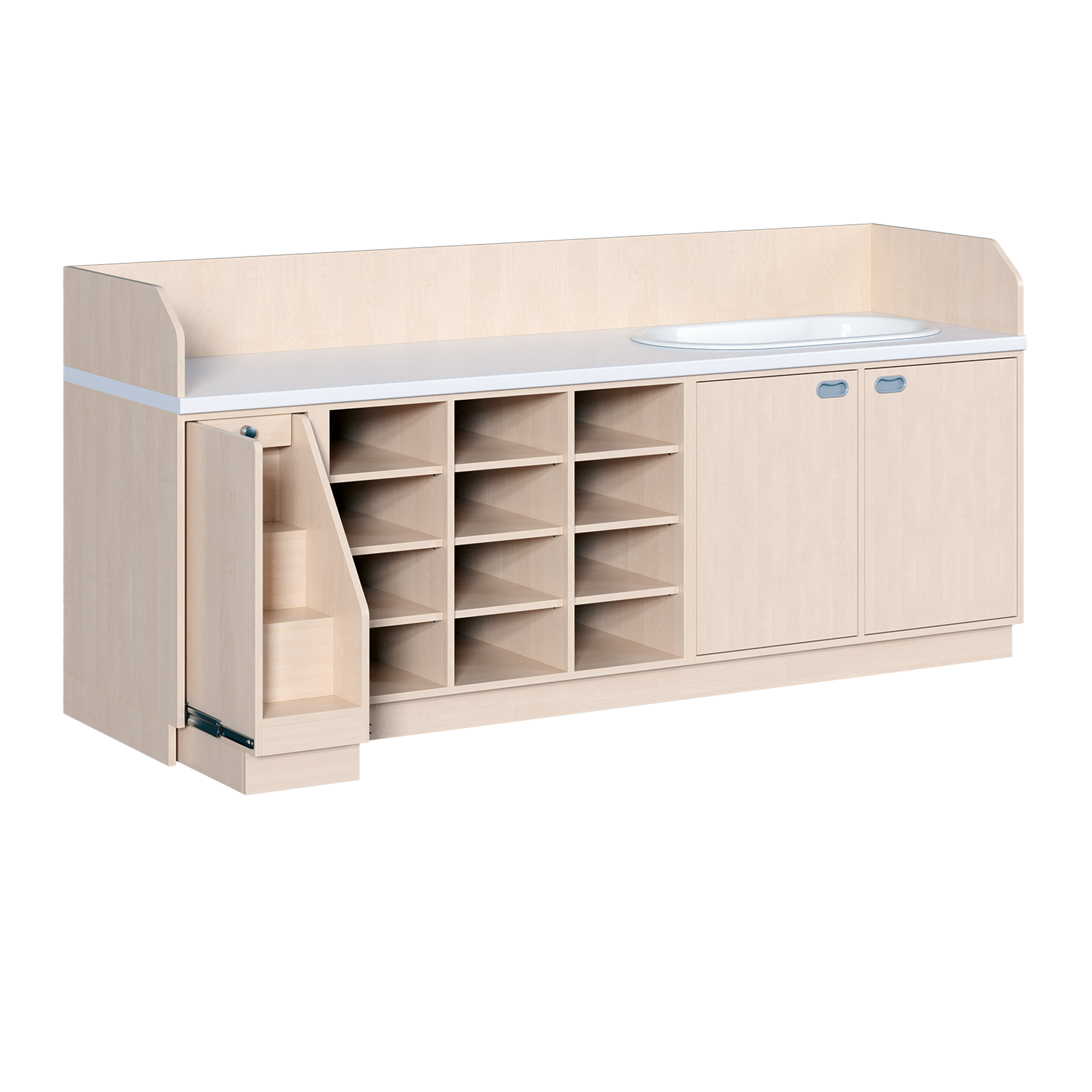 Wickelkommode, vierreihig zuzüglich Waschbecken