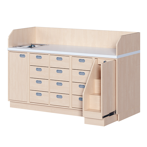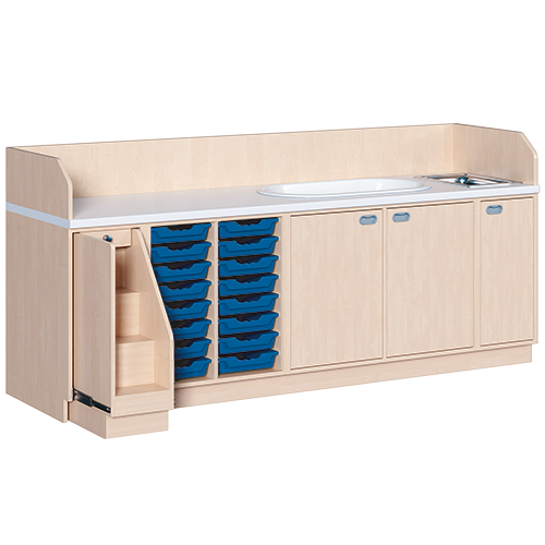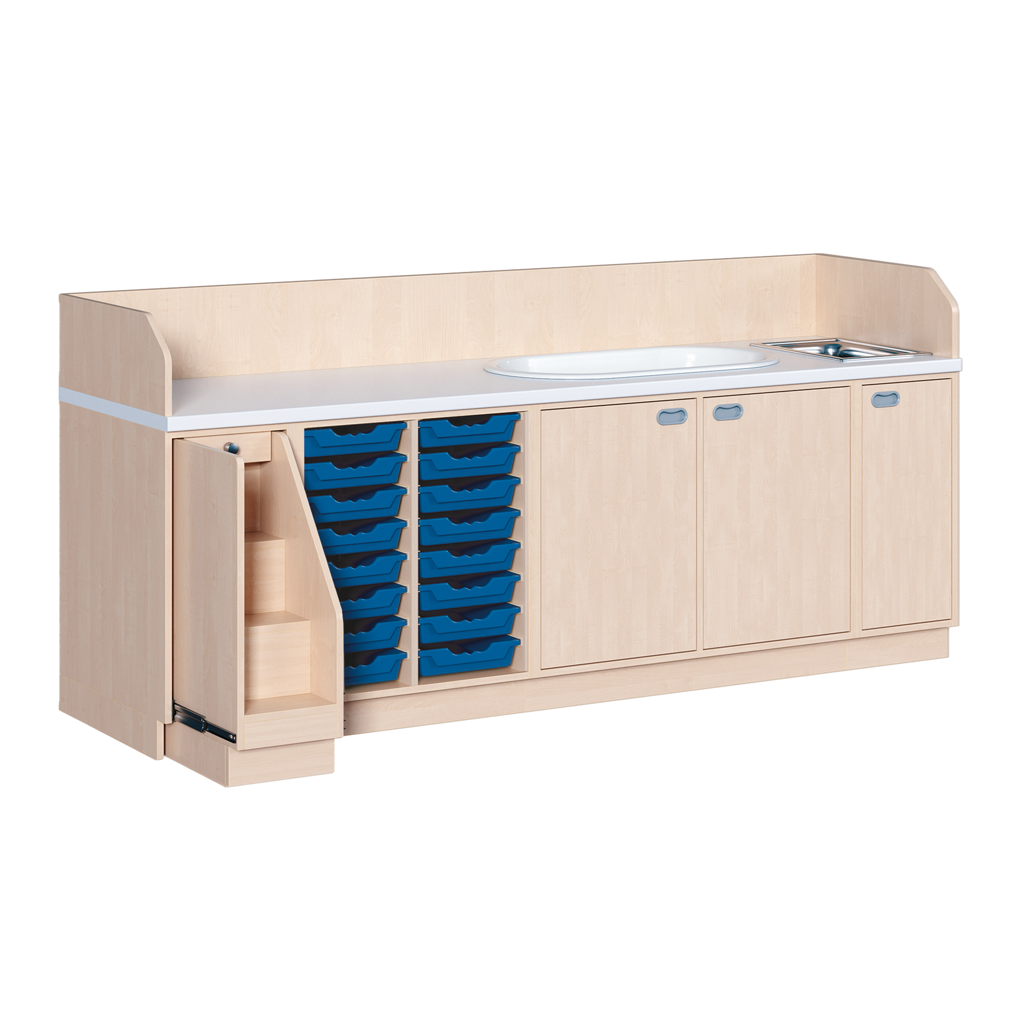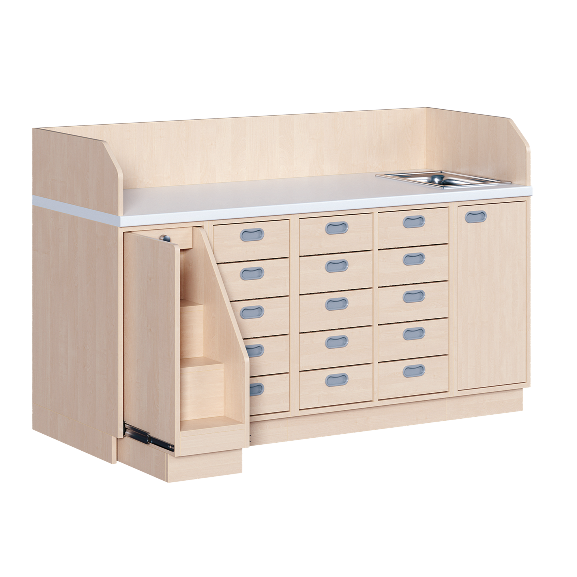 Wickelkommode, vierreihig zuzüglich Waschbecken