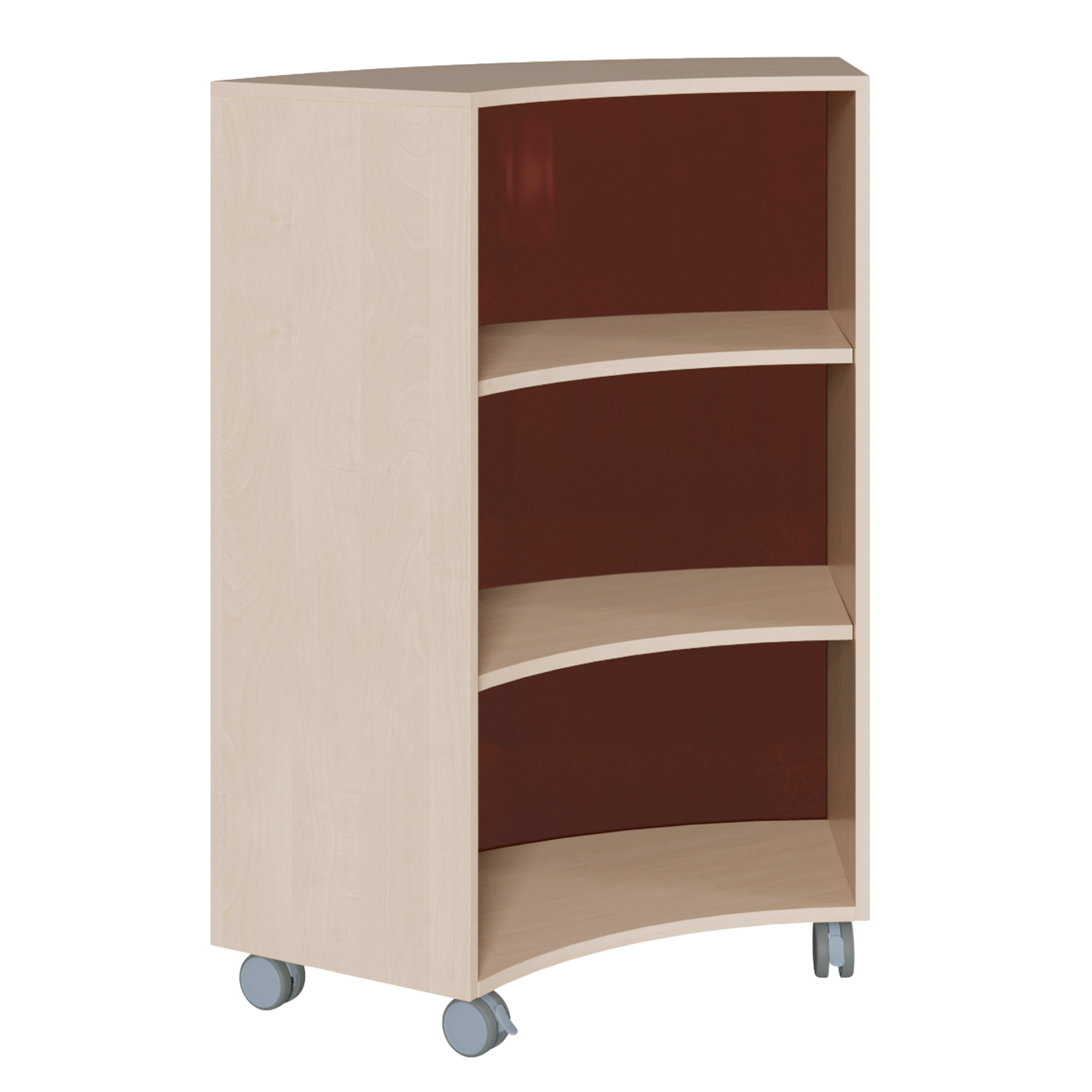 B/H/T: 99x122,5x48 cm, fahrbares Regal auf 1/6-Kreis-Grundfläche mit 2 Zwischenböden