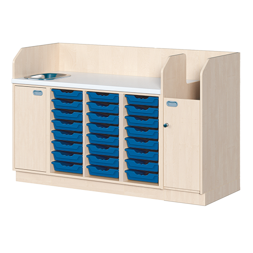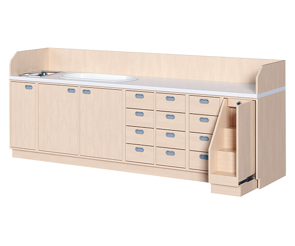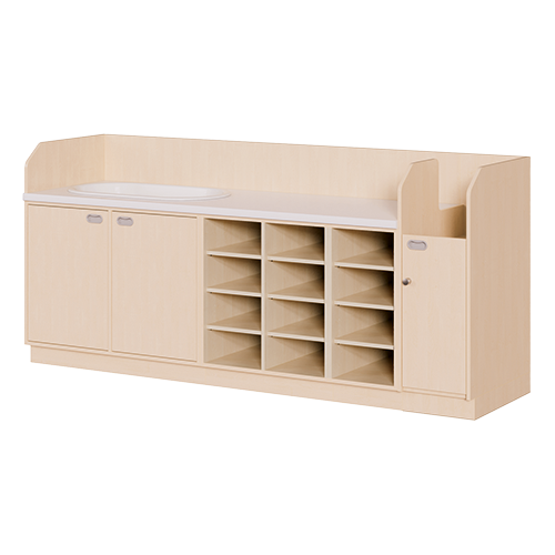 Wickelkommode, vierreihig zuzüglich Waschbecken