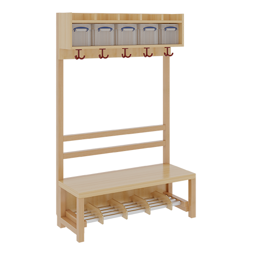 B/H/T: 100x158x39 cm, 5 Plätze, Sitzhöhe 42 cm, offene Stütze, Schuhrost aus Aluminiumrohren mit Trennungen