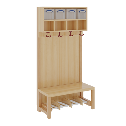 Komplettgarderobe mit doppelter Ablagereihe inklusive Boxen