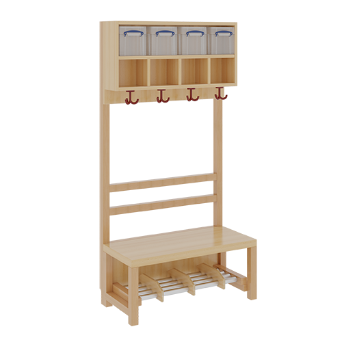 B/H/T: 35x158x39 cm, Sitzhöhe 42 cm, zweiteilig als gerundete Bank, einschließlich Schuhablage, mit Eckablage, für Garderoben mit Stütze