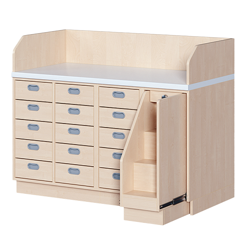 Wickelkommode, vierreihig zuzüglich Waschbecken