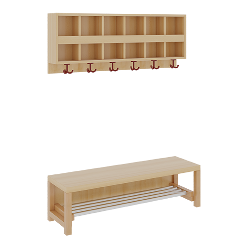 B/T: 120x35 cm, 6 Plätze, Sitzhöhe: 42 cm, 2teilig ohne Stütze, Ablage zur Wandmontage, mit Schuhrost aus Aluminiumrohren