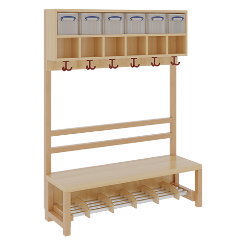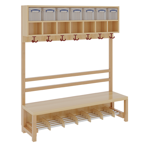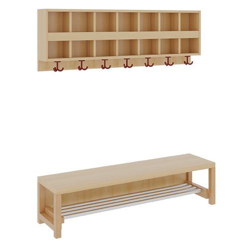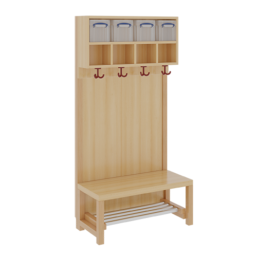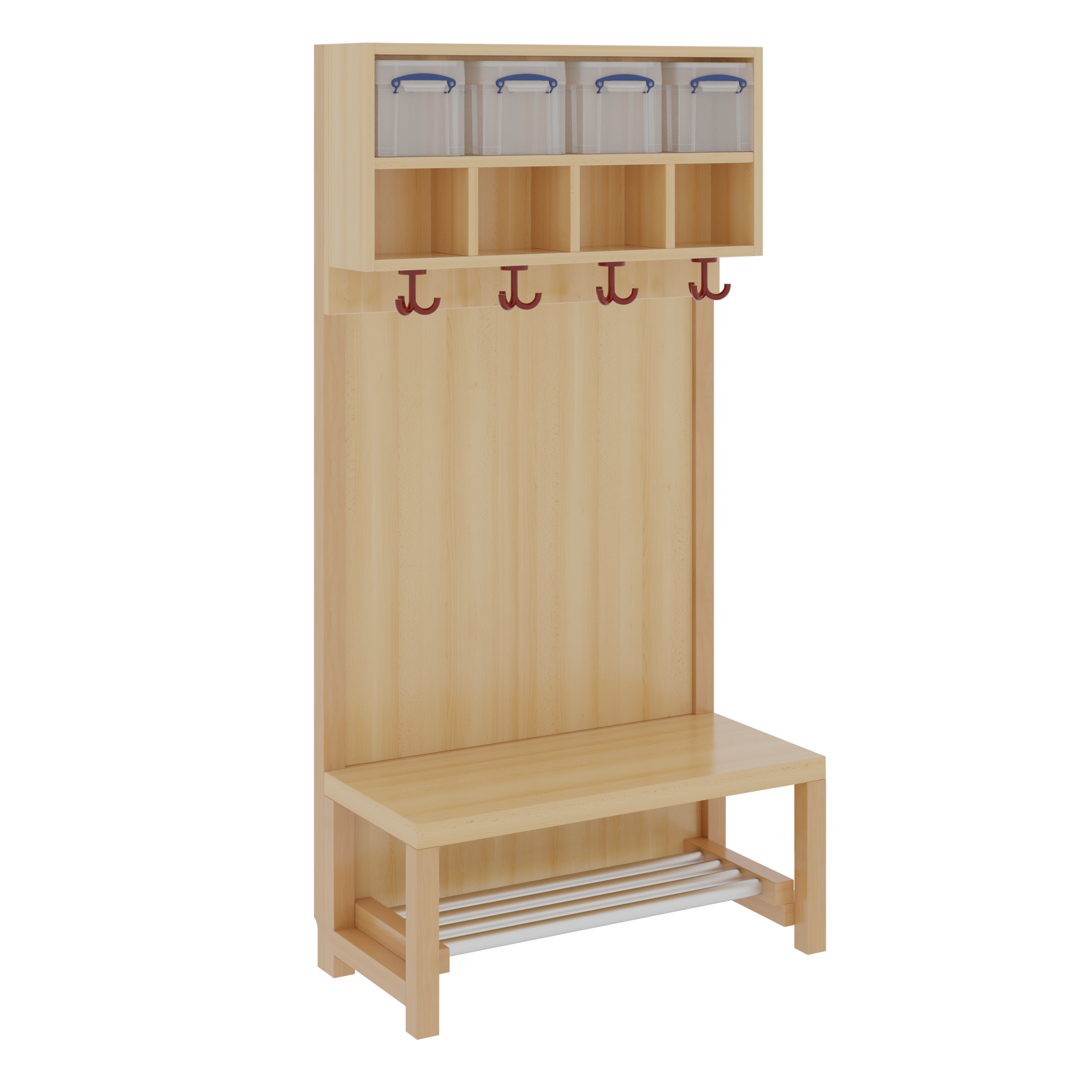 B/H/T: 39x158x39 cm, Sitzhöhe: 42 cm, Stützen über Eck mit Paneelrückwänden in Buche-hell, Schuhablage