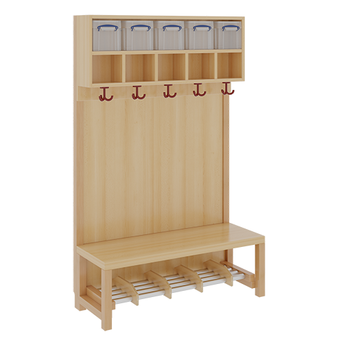 Komplettgarderobe mit doppelter Ablagereihe inklusive Boxen