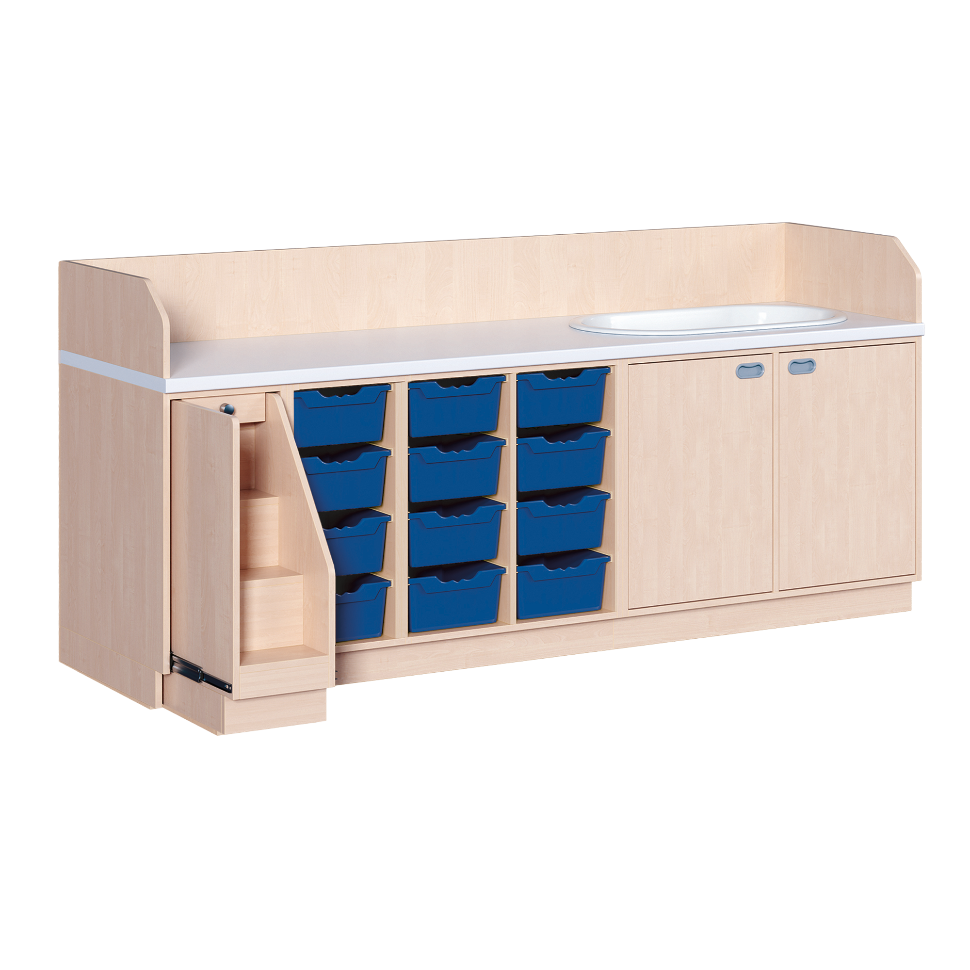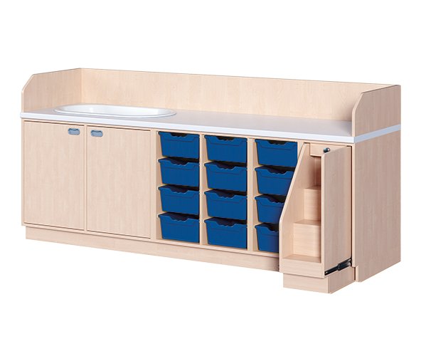 Wickelkommode, vierreihig zuzüglich Badewanne