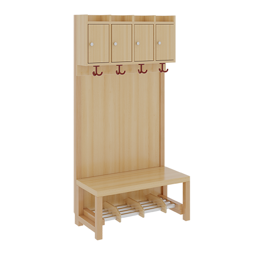 B/H/T: 80x130x39 cm, 4 Plätze, Sitzhöhe: 26 cm, Stütze mit Paneelrückwand, Schuhrost aus Aluminiumrohren mit Facheinteilungen