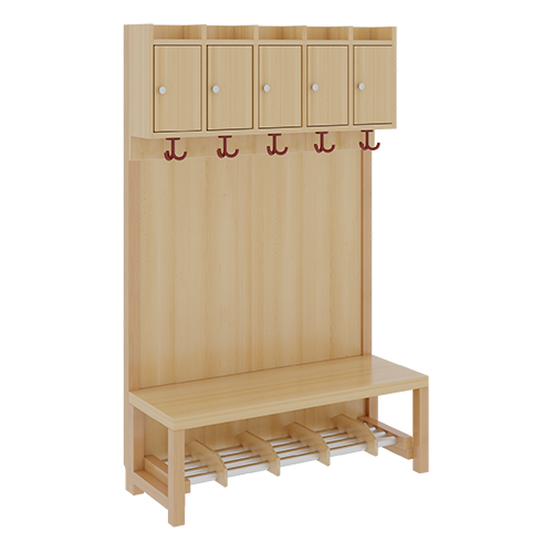 B/H/T: 100x158x39 cm, 5 Plätze, Sitzhöhe: 42 cm, Stütze mit Paneelrückwand, Schuhrost aus Aluminiumrohren mit Facheinteilungen