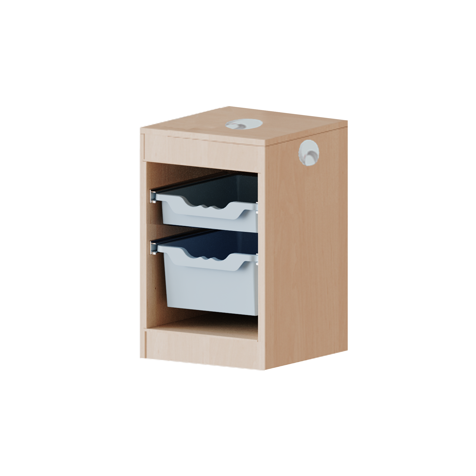 B/H/T: 36,1x56x40 cm, mit zusätzlichem Kabelfach und 3 Kabeldurchlässen, 1 flache und 1 hohe ErgoTray Boxen
