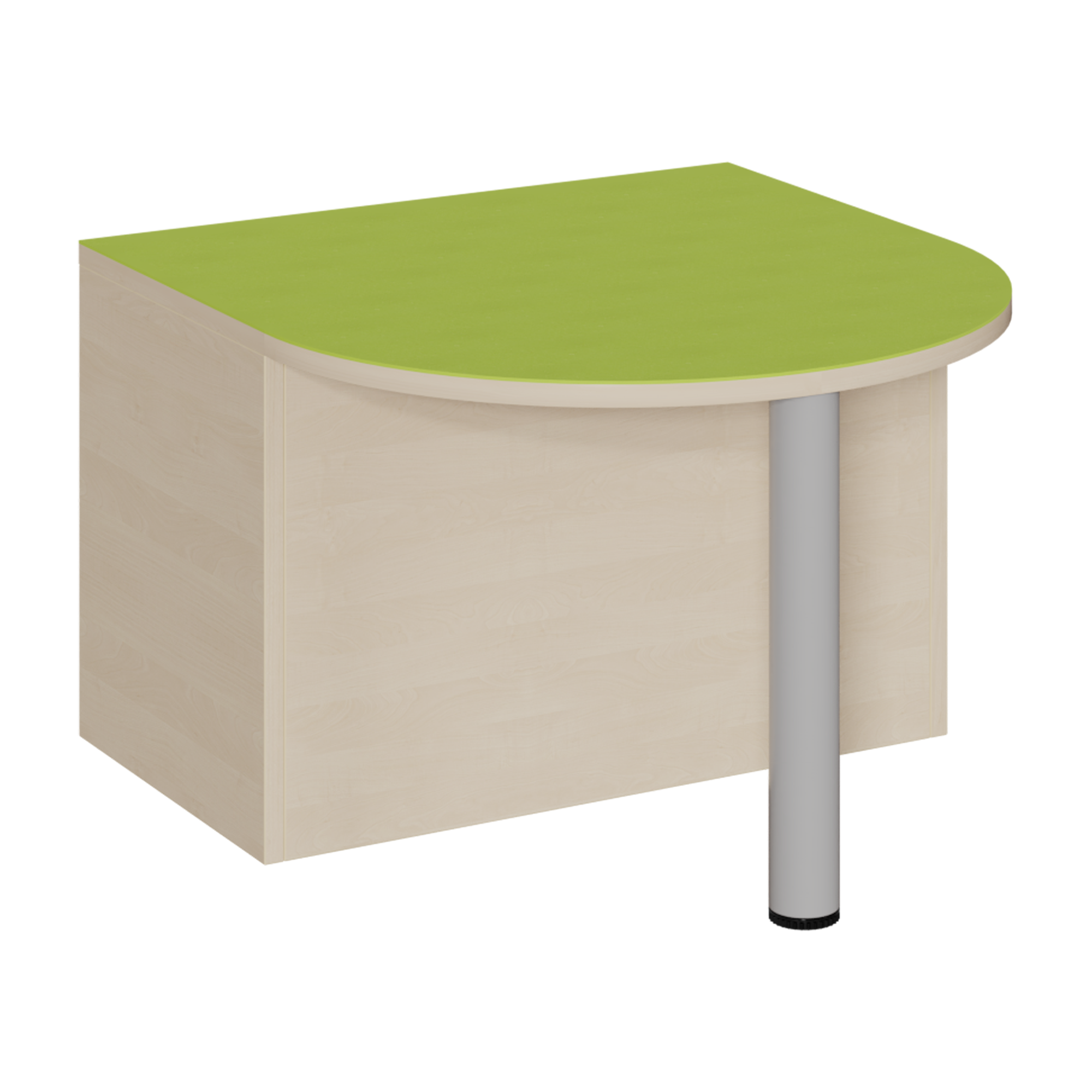 B/T: 70x75 cm, Höhe wählbar, Halbrundbereich R 35 cm offen, mittig mit Stützfuß