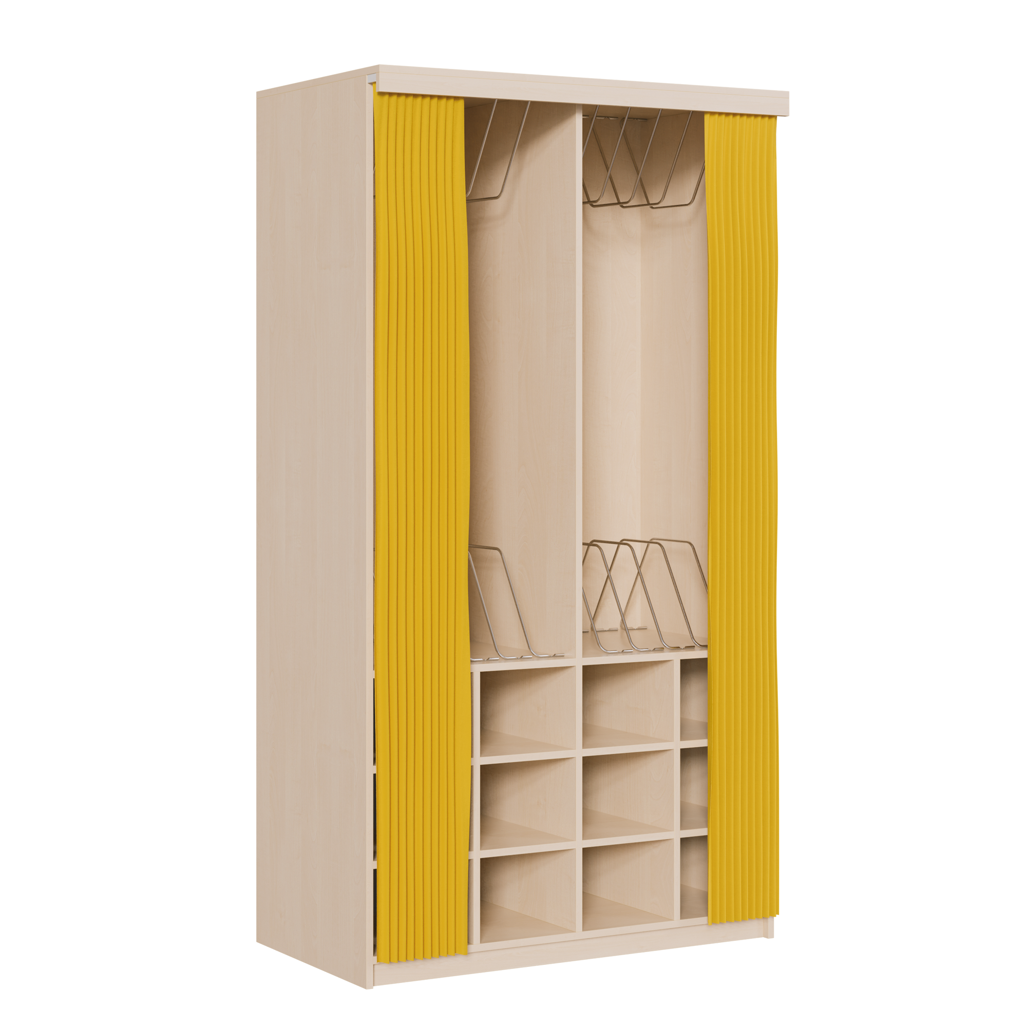 B/H/T: 198x60x72 cm, Schrank 4-türig, für 12er Liegepolster-Bettzeug-Regal (mit Vorhangeinrichtung)