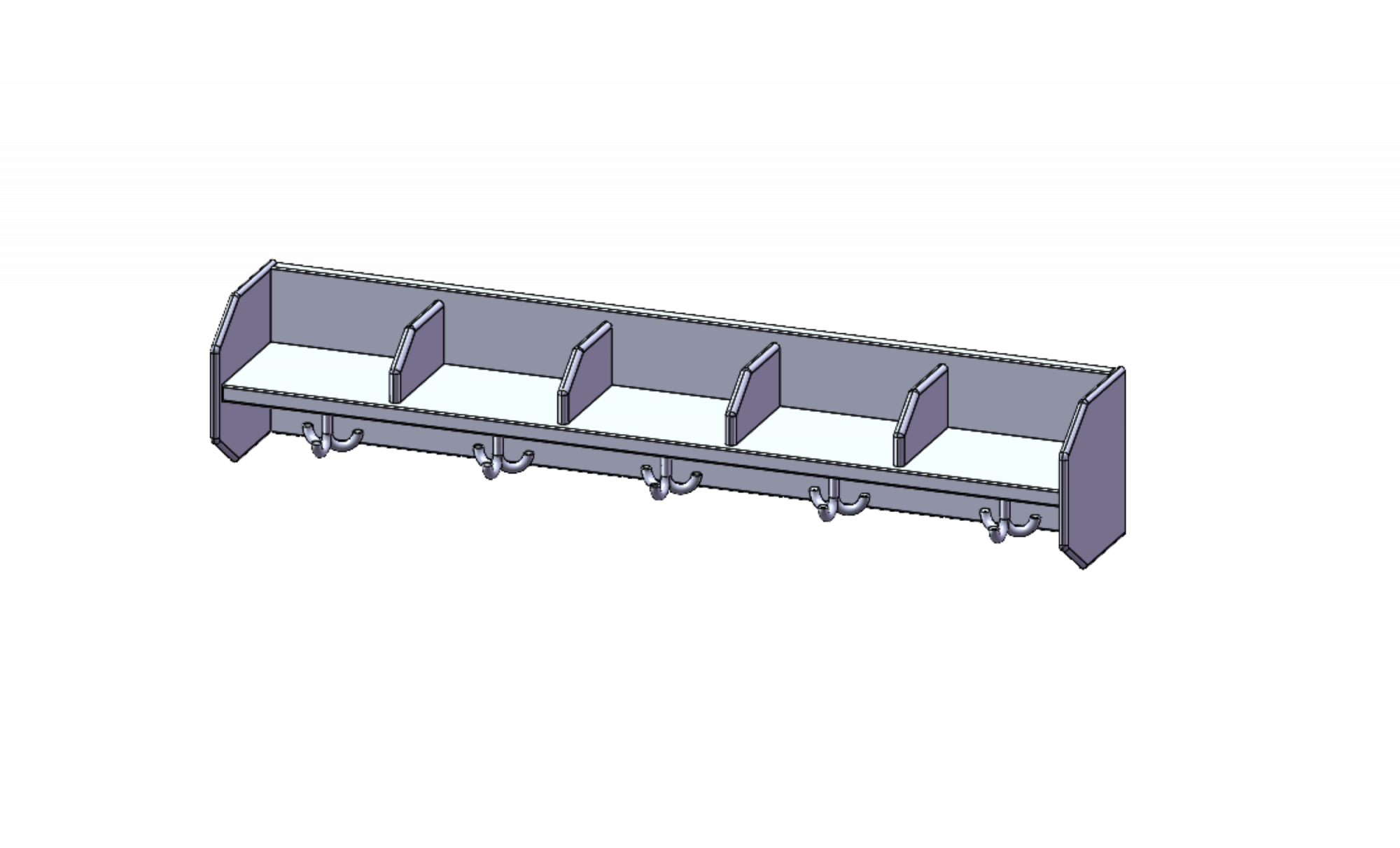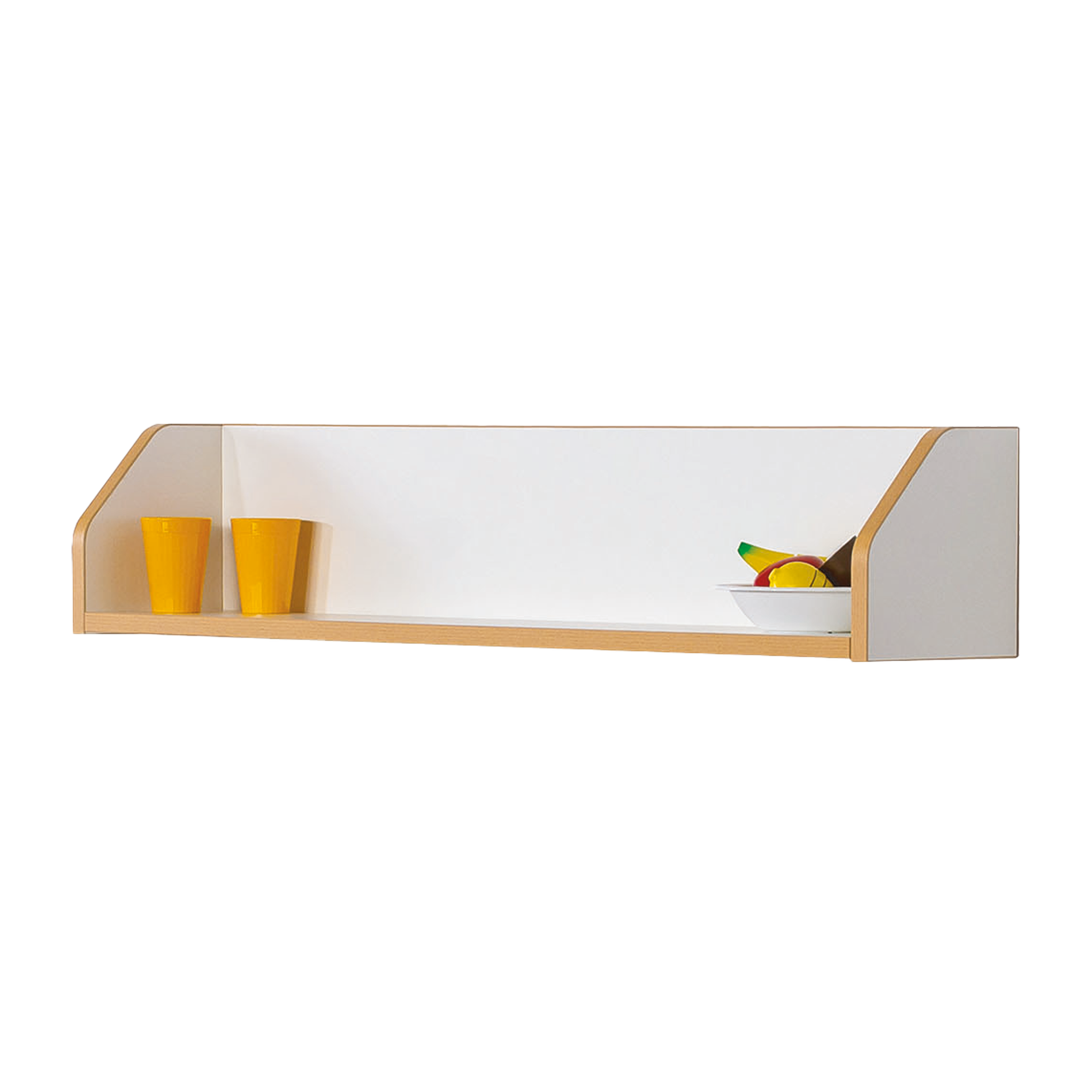H/T: 20x18 cm in verschiedenen Breiten, offene Ablagen zur Wandmontage, darunter Dreifachhaken