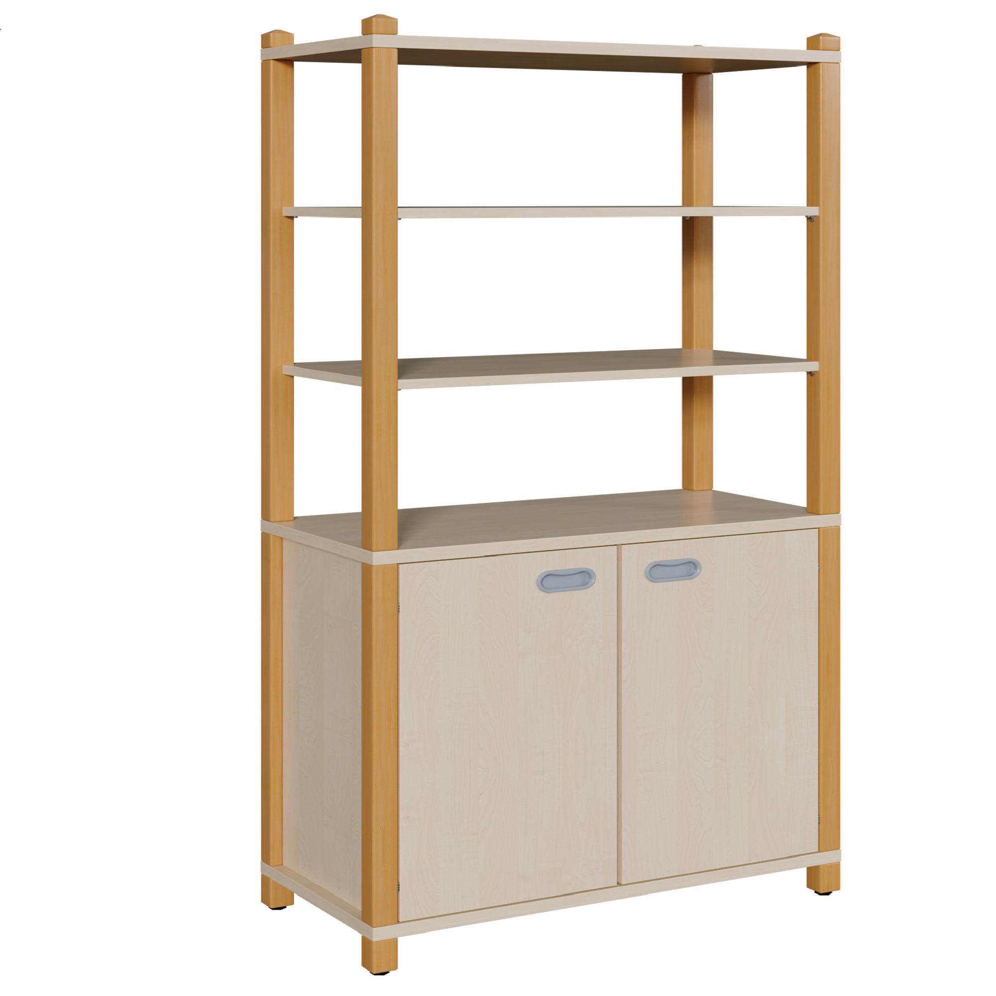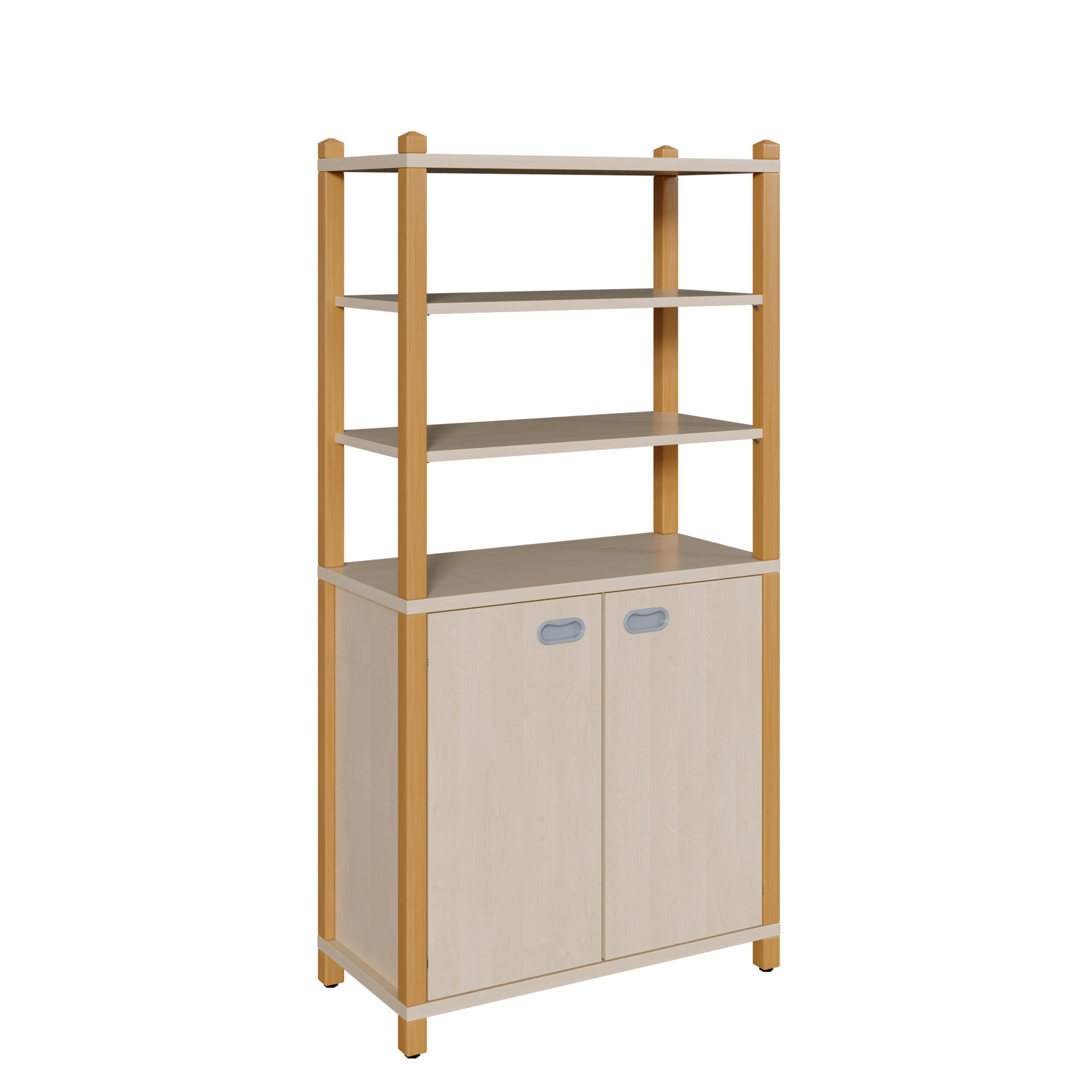 Stollen-Schrank mit 2 Türen, oben 3 offene Fächer