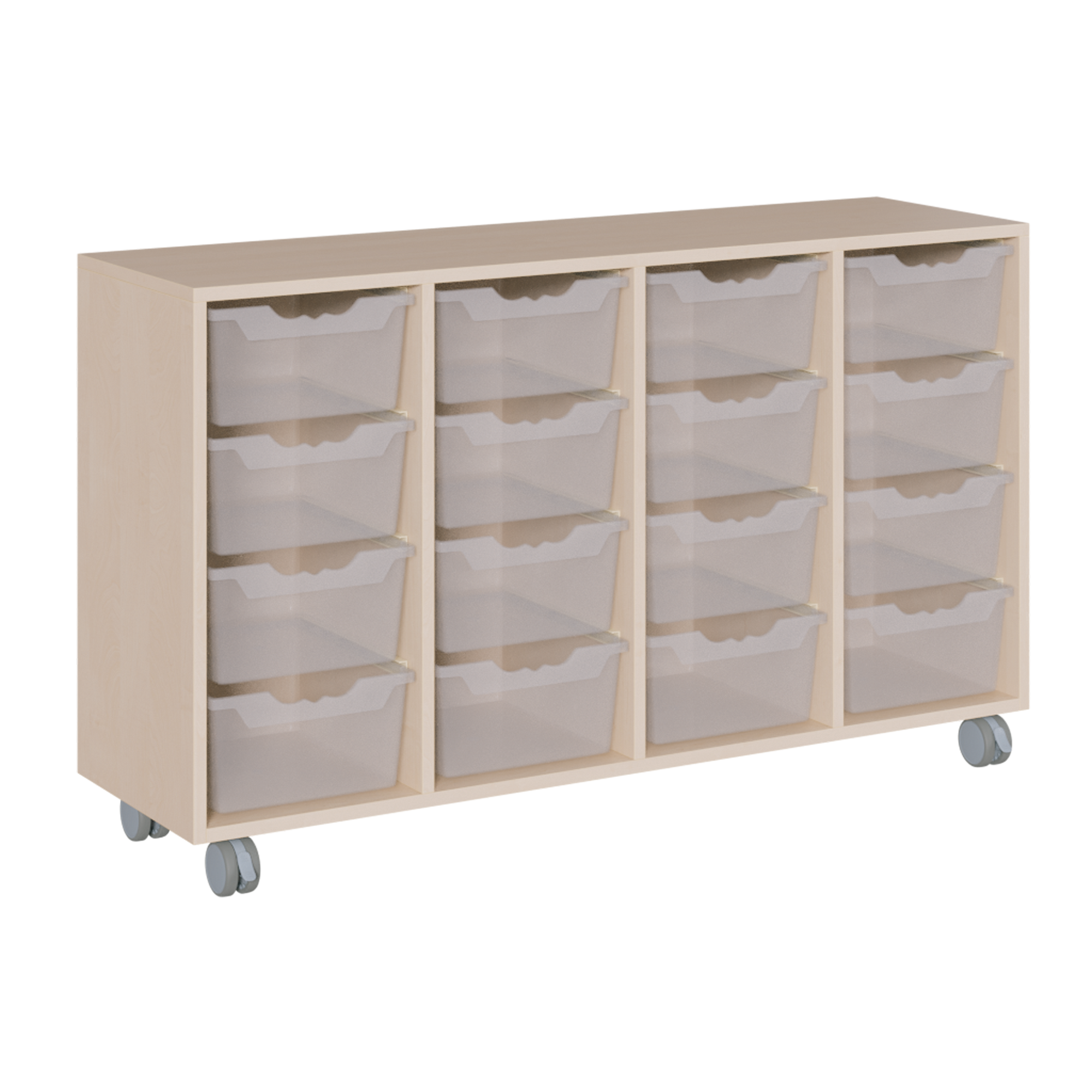B/H/T: 139x82,5x40 cm, in 4 Reihen 16 hohe ErgoTray-Boxen