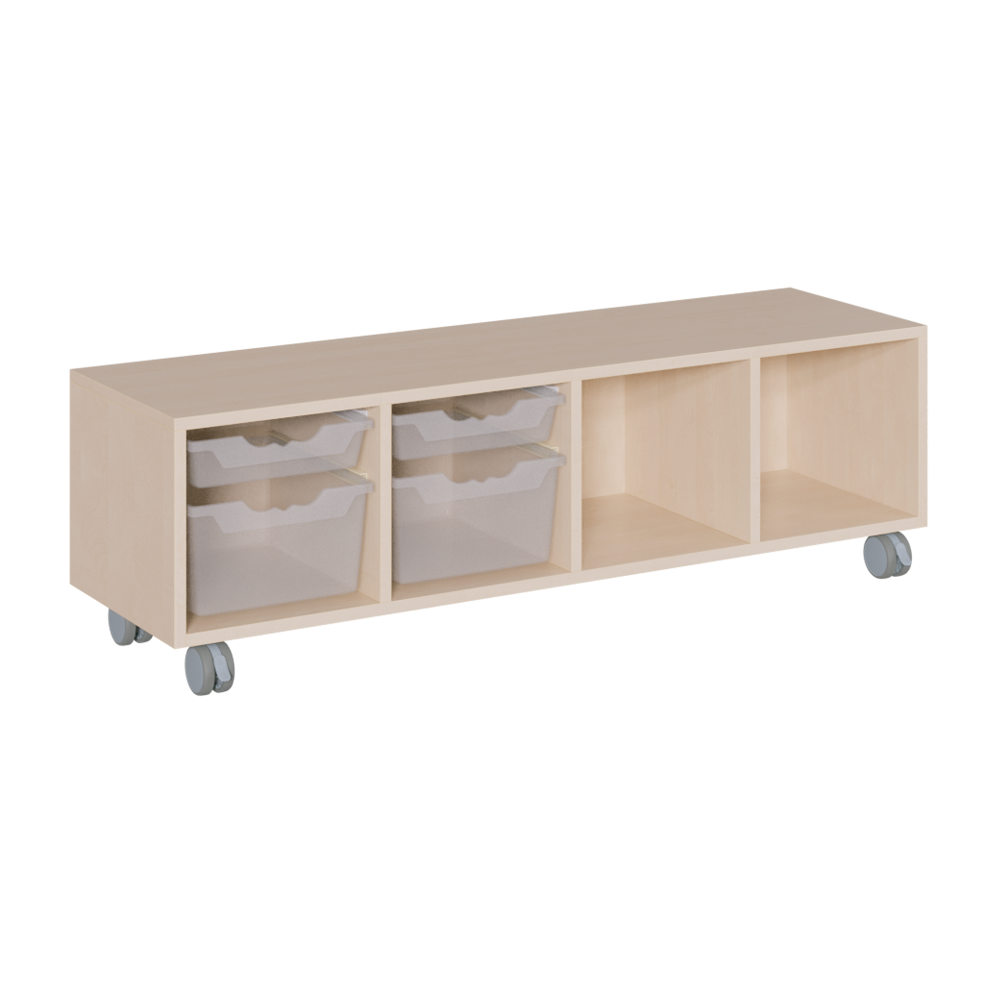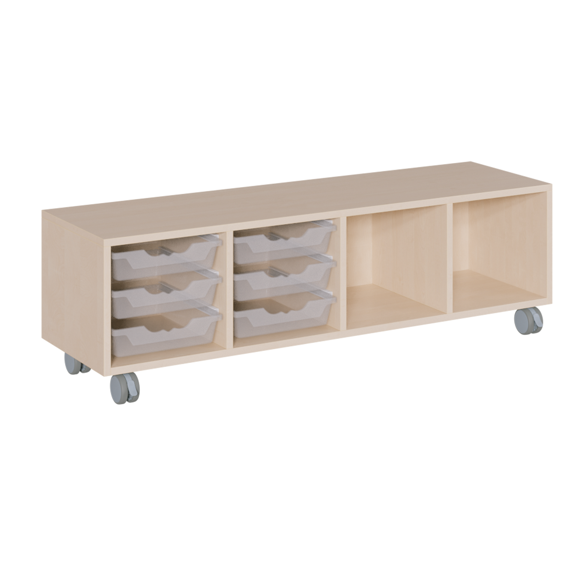 B/H/T: 139x42,5x40 cm, in 4 Reihen 6 flache ErgoTray-Boxen und 2 Fächer