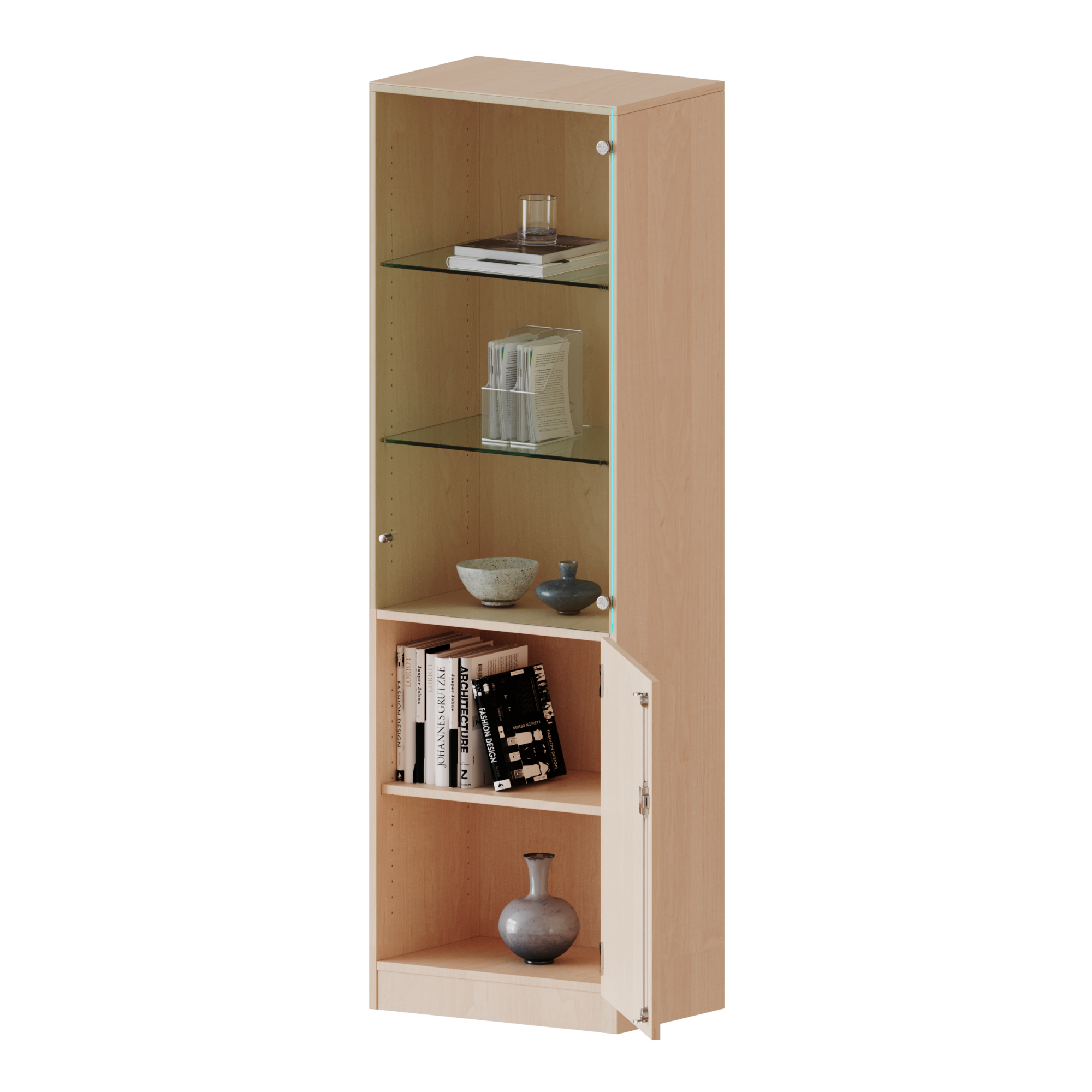 B/H/T: 60x190x40 cm, 1 geschlossene und 1 Glastür, abschließbar, Türen öffnen nach rechts, mit Sockel (81 mm)