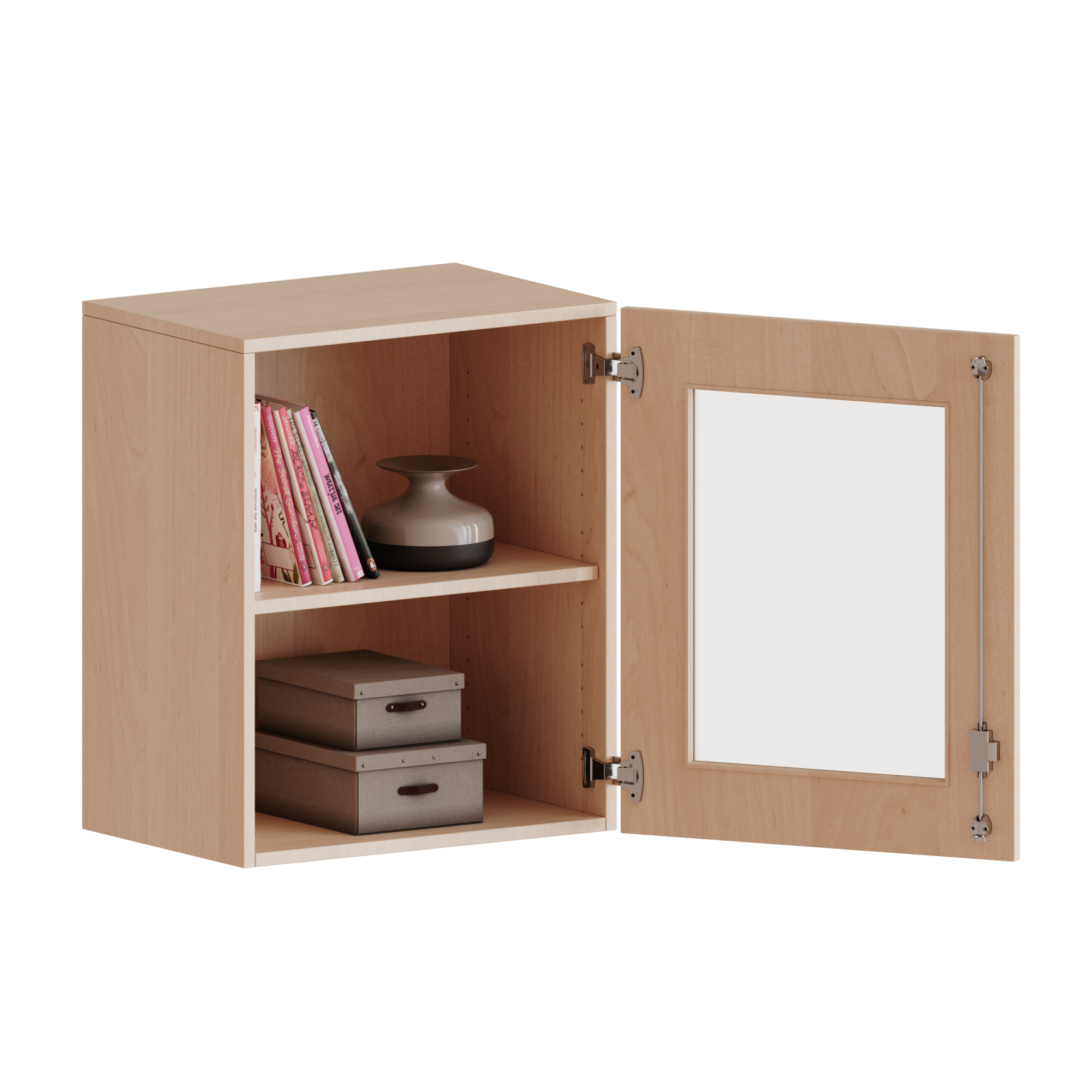 B/H/T: 60x72x40 cm, 1 Tür mit Glaseinsatz, abschließbar, Tür öffnet nach rechts
